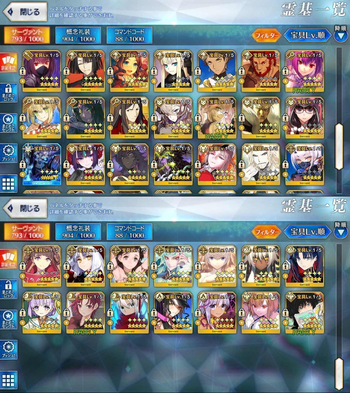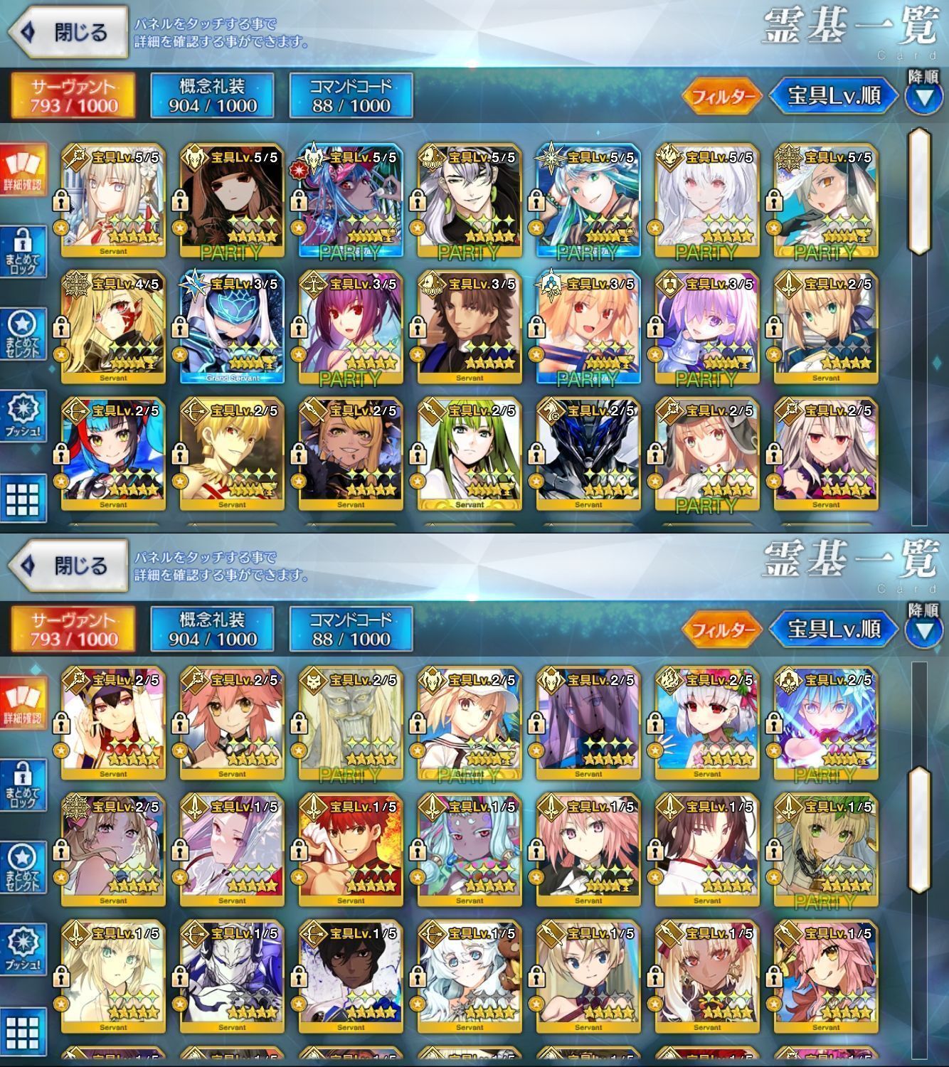 重複分は宝具強化に使用しているため、累計入手数=★5サーヴァントの宝具レベル合計値となります。