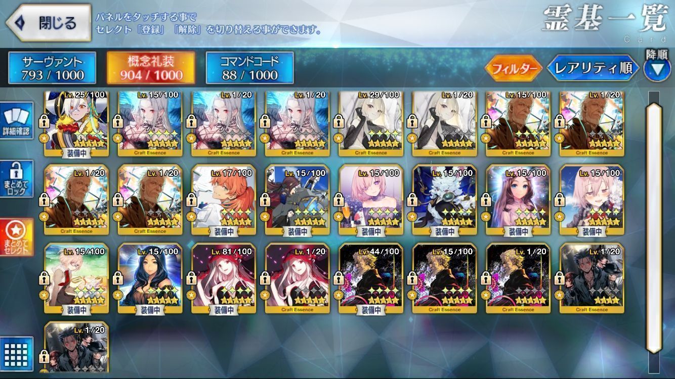 アカウント特定防止といった観点から主なサーヴァントを抜粋して掲載しております。