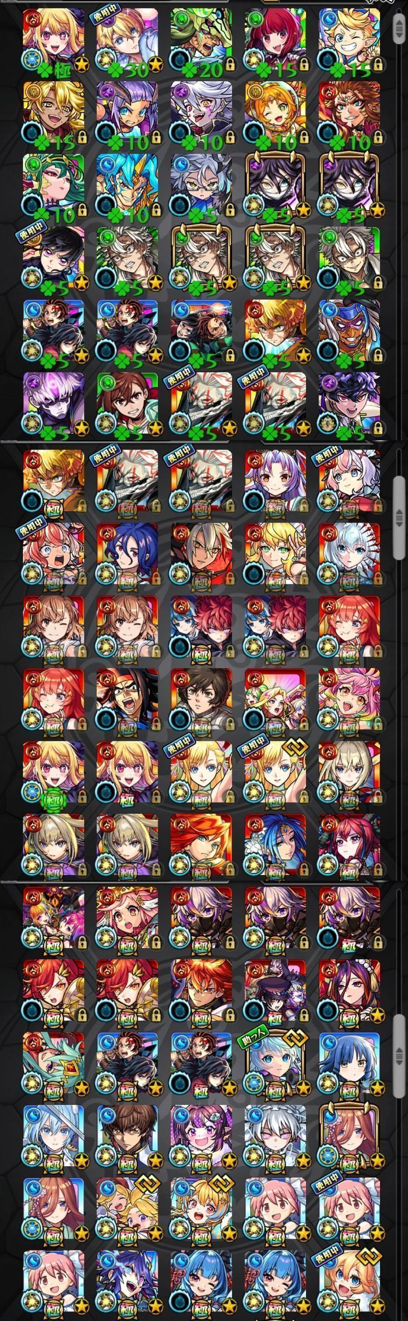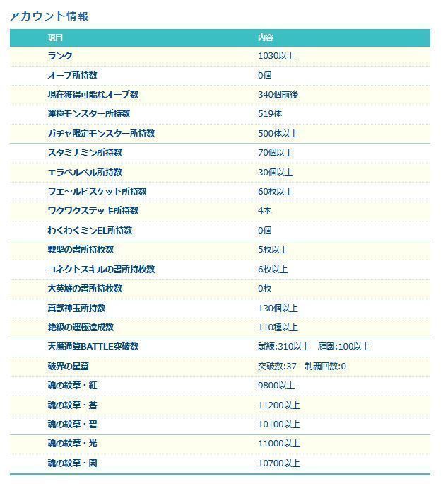 アカウント特定防止といった観点から、主なモンスターを抜粋して記載させていただいております。
