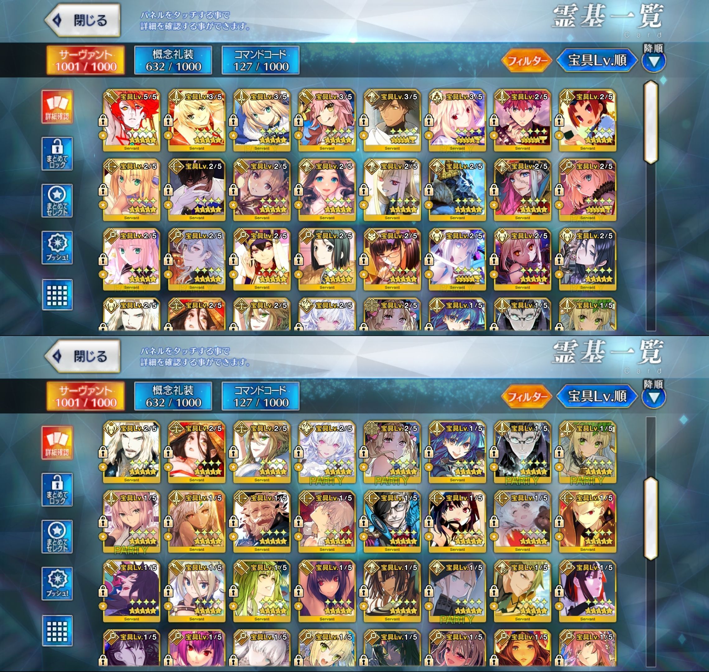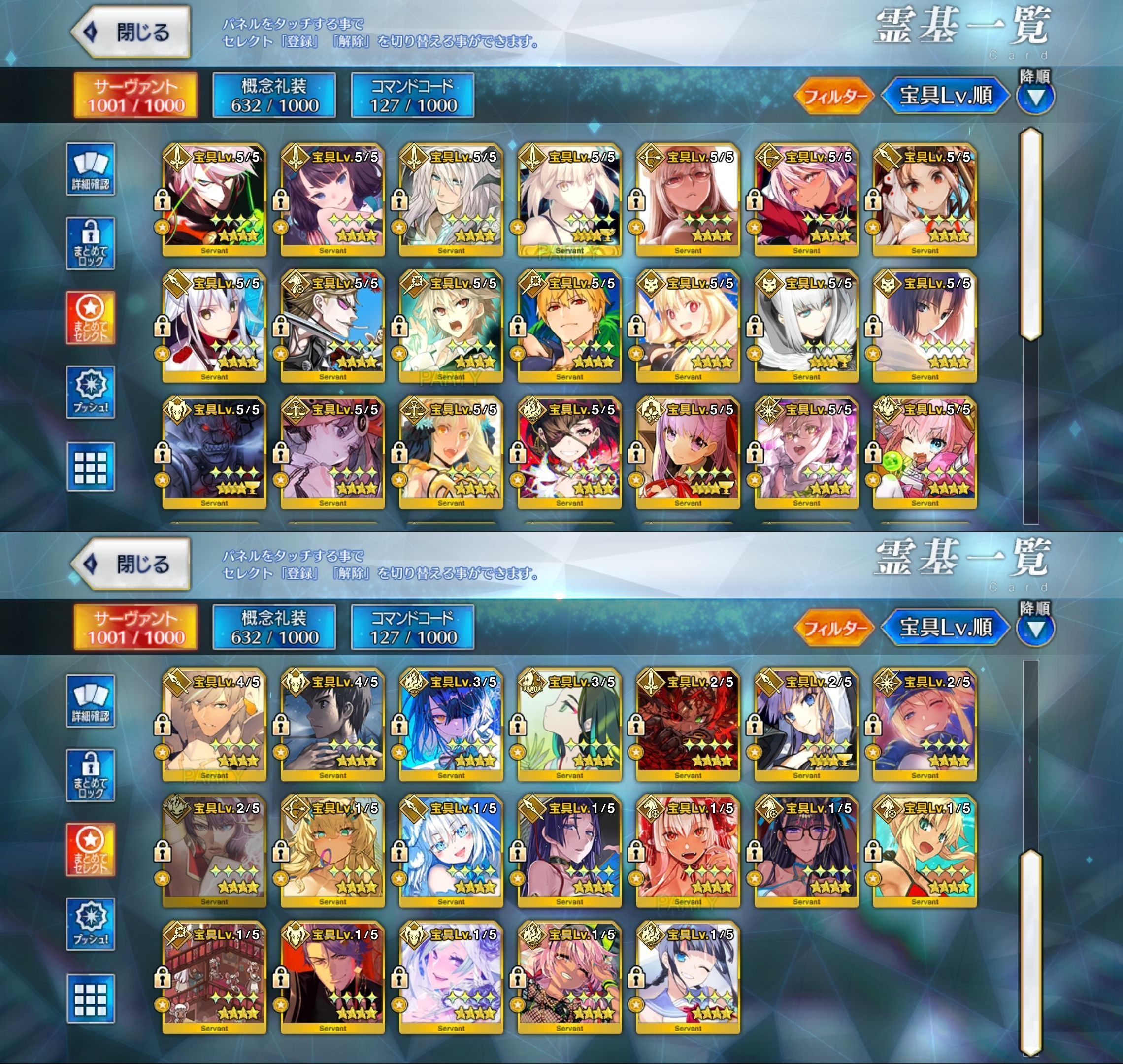 重複分は宝具強化に使用しているため、累計入手数=★5サーヴァントの宝具レベル合計値となります。