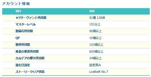 アカウント特定防止といった観点から主なサーヴァントを抜粋して掲載しております。