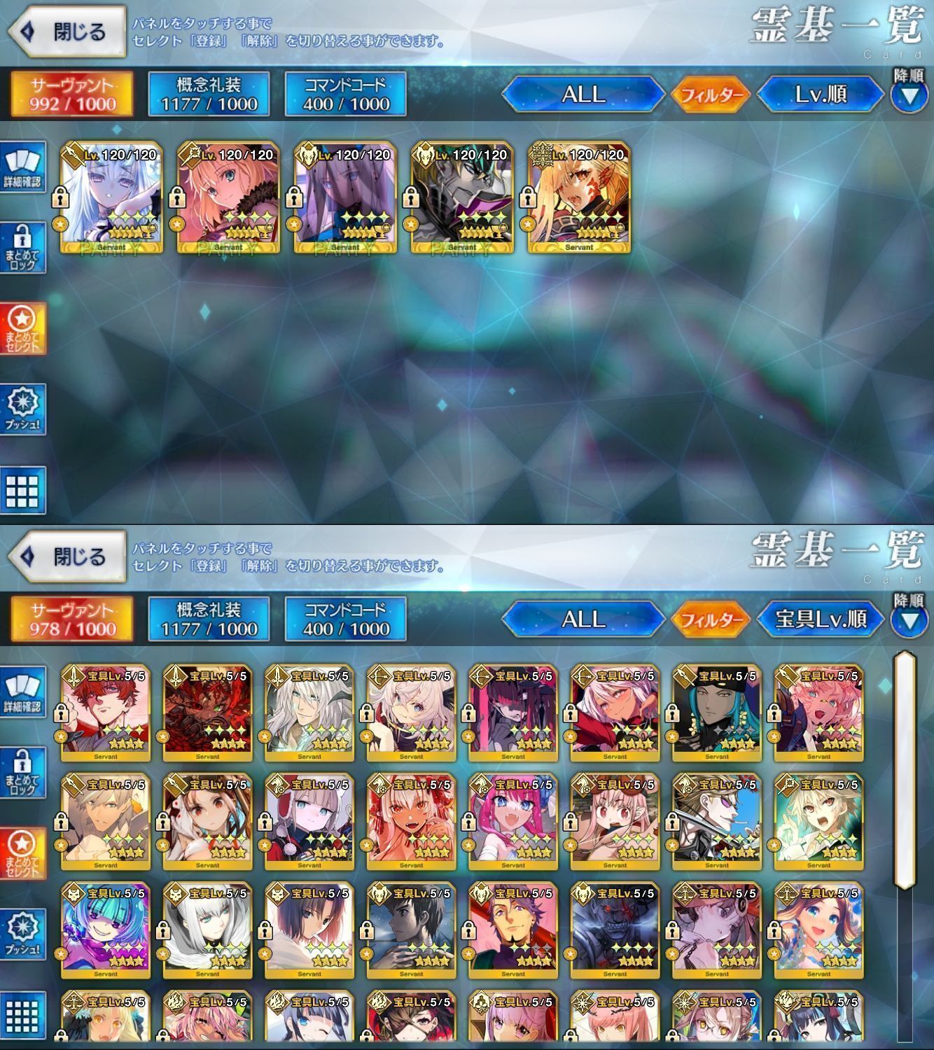 星5サーヴァントの数は累計入手数です。