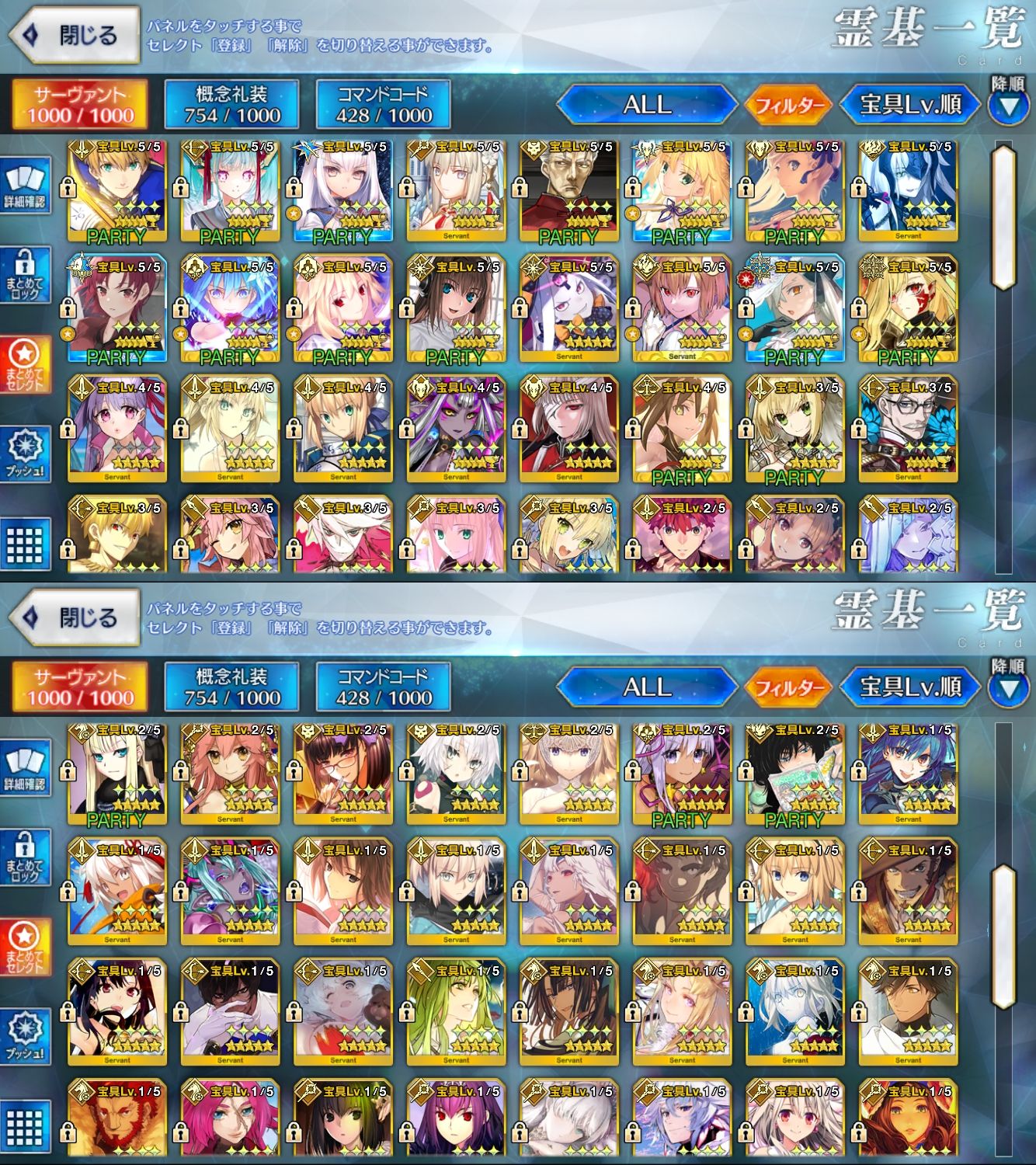 重複分は宝具強化に使用しているため、累計入手数=★5サーヴァントの宝具レベル合計値となります。
