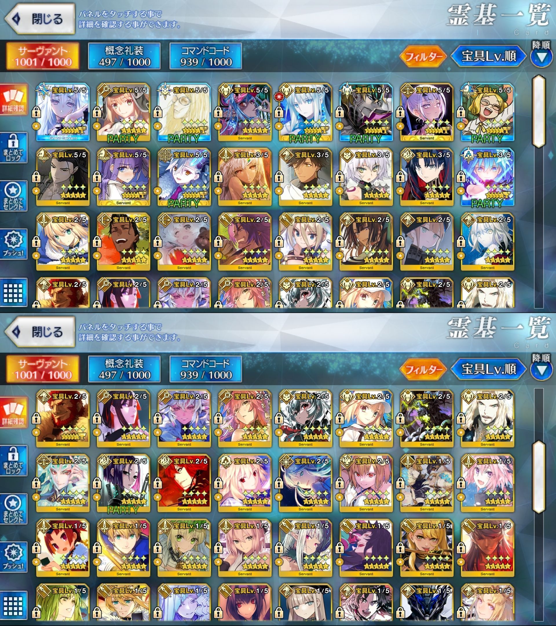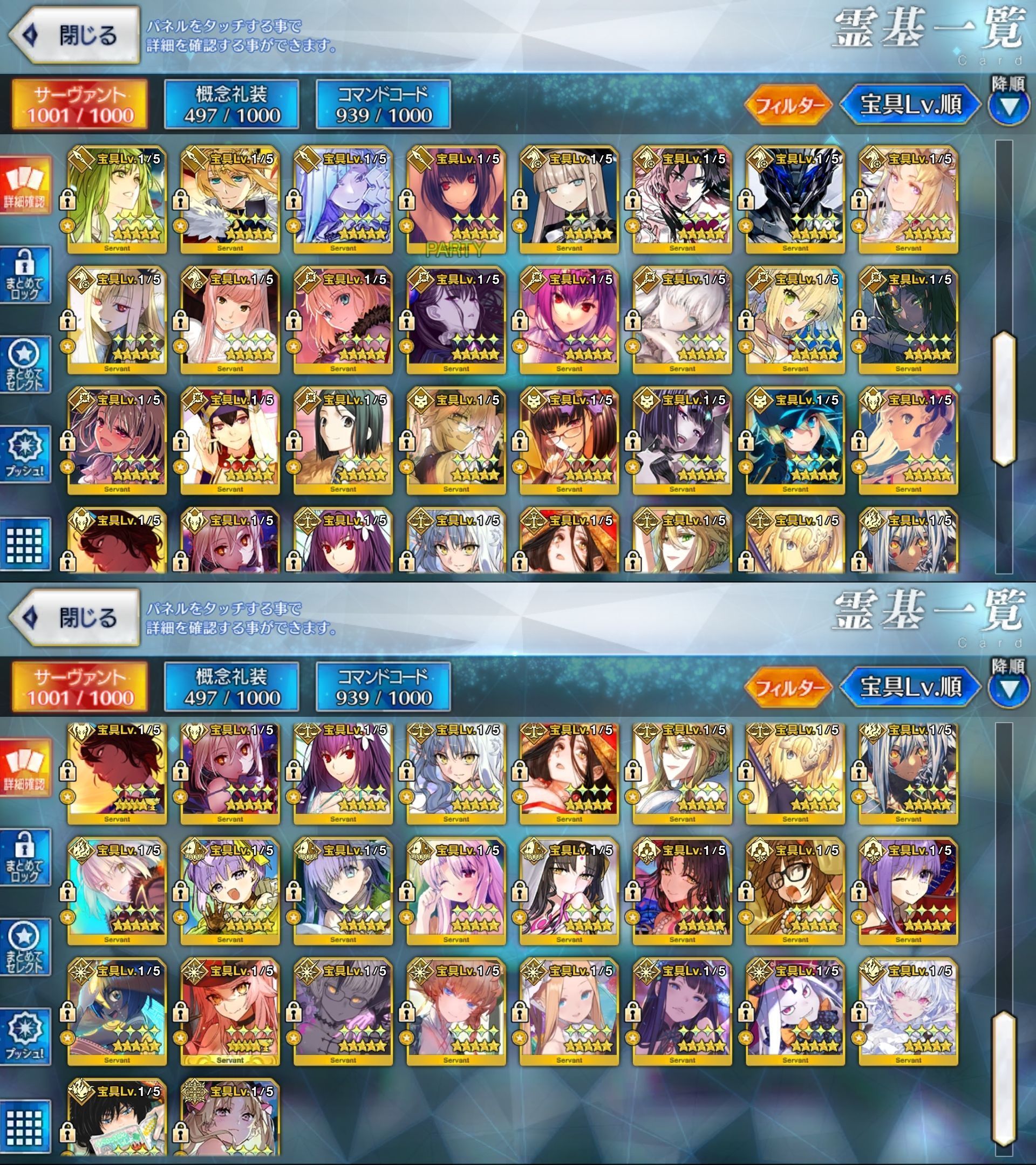重複分は宝具強化に使用しているため、累計入手数=★5サーヴァントの宝具レベル合計値となります。
