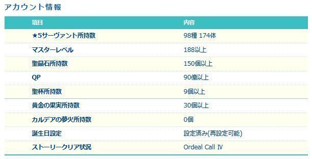 アカウント特定防止といった観点から主なサーヴァントを抜粋して掲載しております。