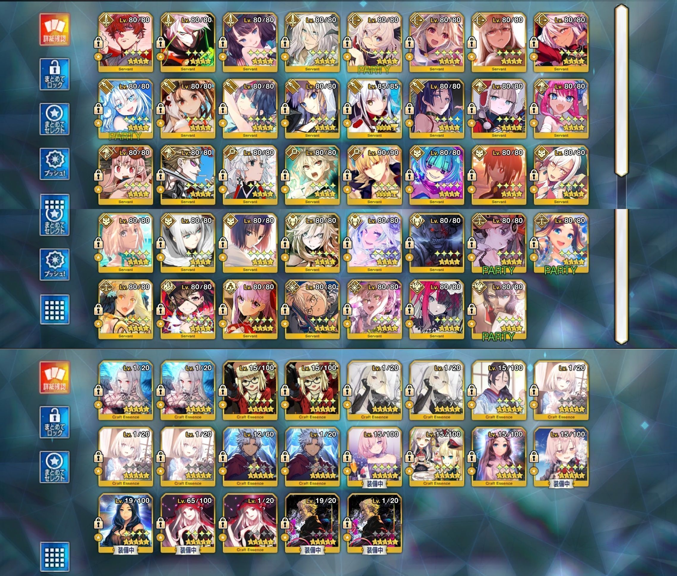 下記のようなサーヴァントを所持しております。(一部抜粋)