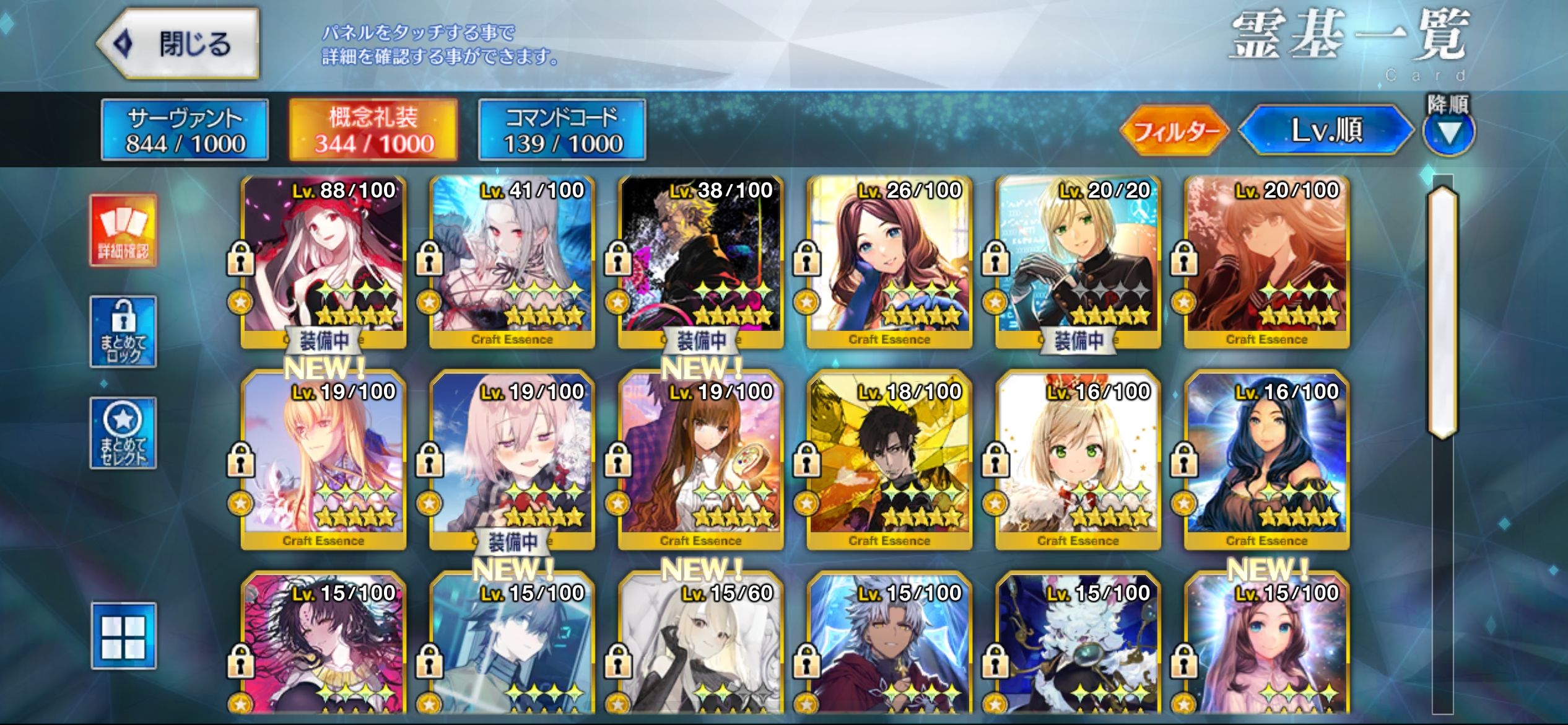 ミッション回収可能石800前後、手持ちのキャラの7割ほど最終再臨しておりません。