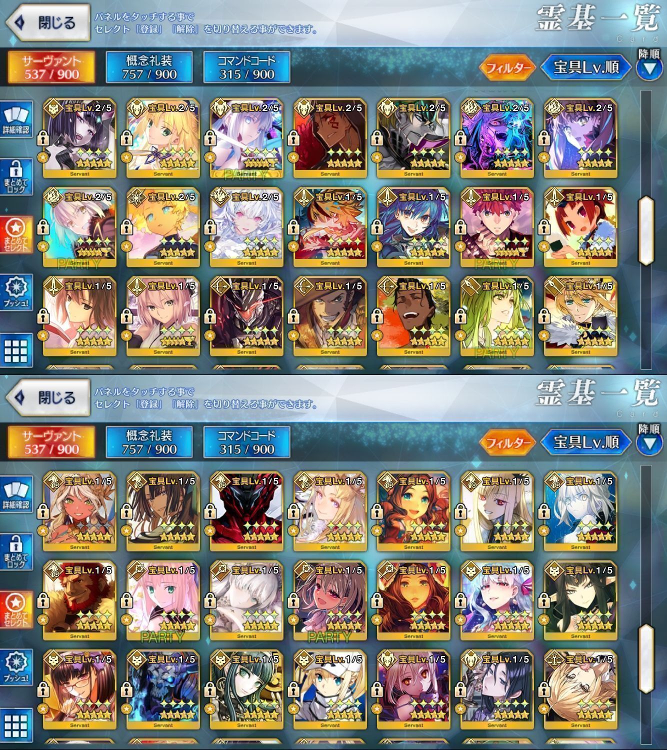 星5サーヴァントの数は累計入手数です。
