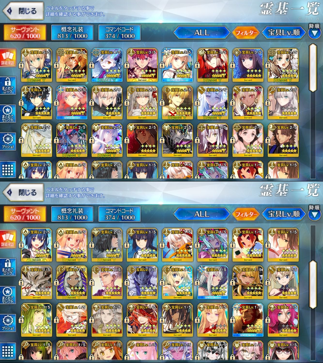 重複分は宝具強化に使用しているため、累計入手数=★5サーヴァントの宝具レベル合計値となります。