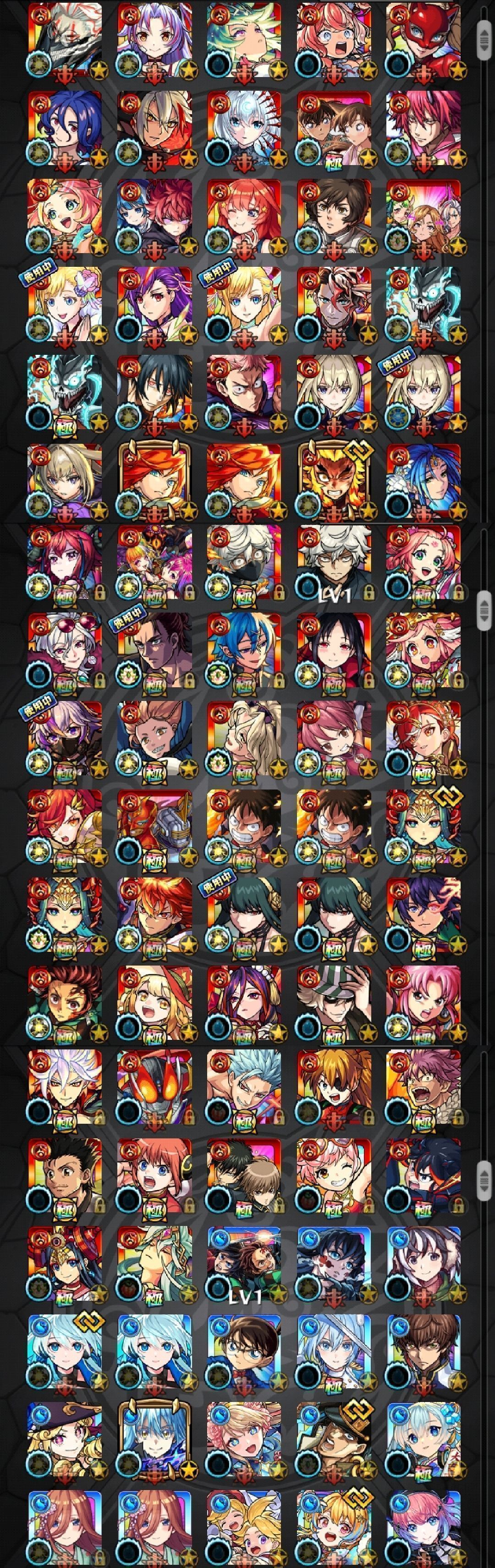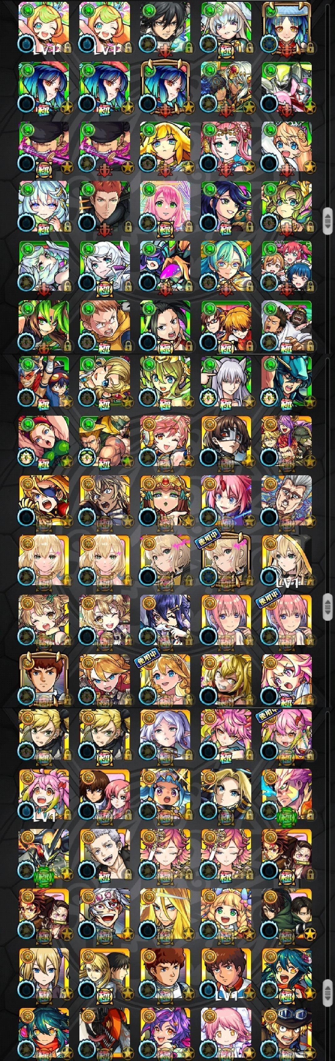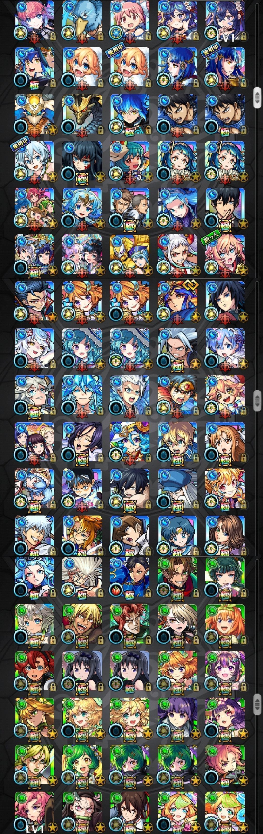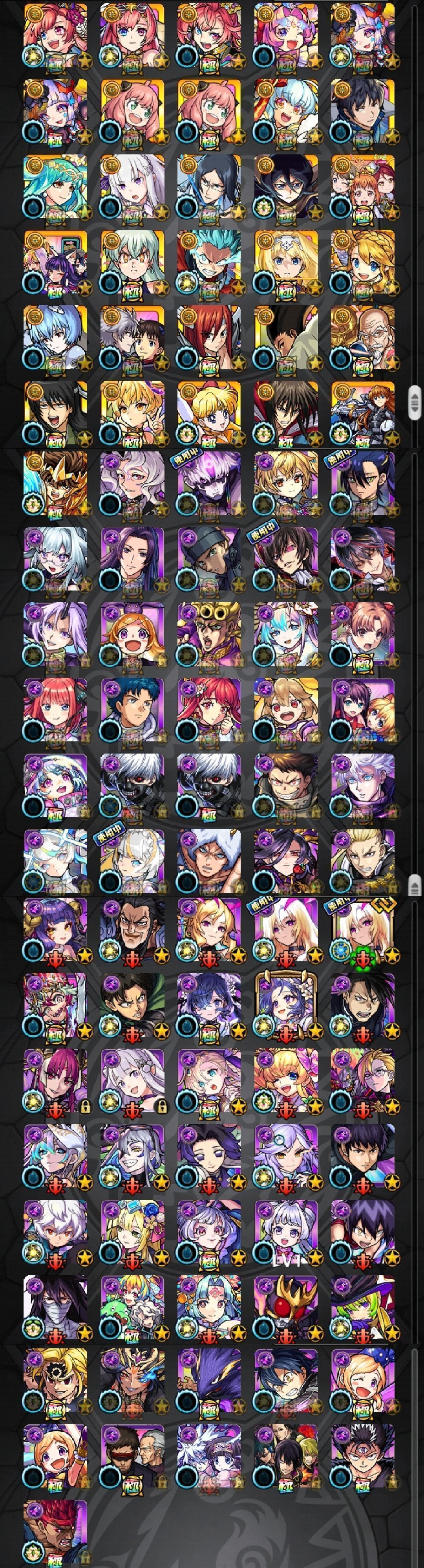 アカウント特定防止といった観点から、主なモンスターを抜粋して記載させていただいております。