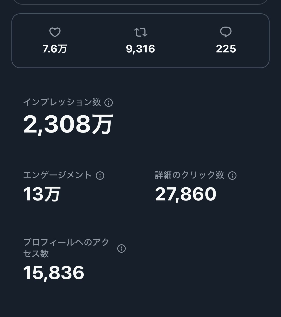 バズった投稿が複数あります。最高は【7.5万いいね】となります。