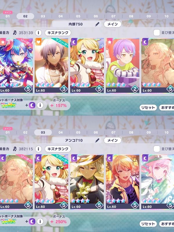 ミクはフルコンプ、東方とたまごっちコラボ・AN以外は全てマスラン&スキル完凸。