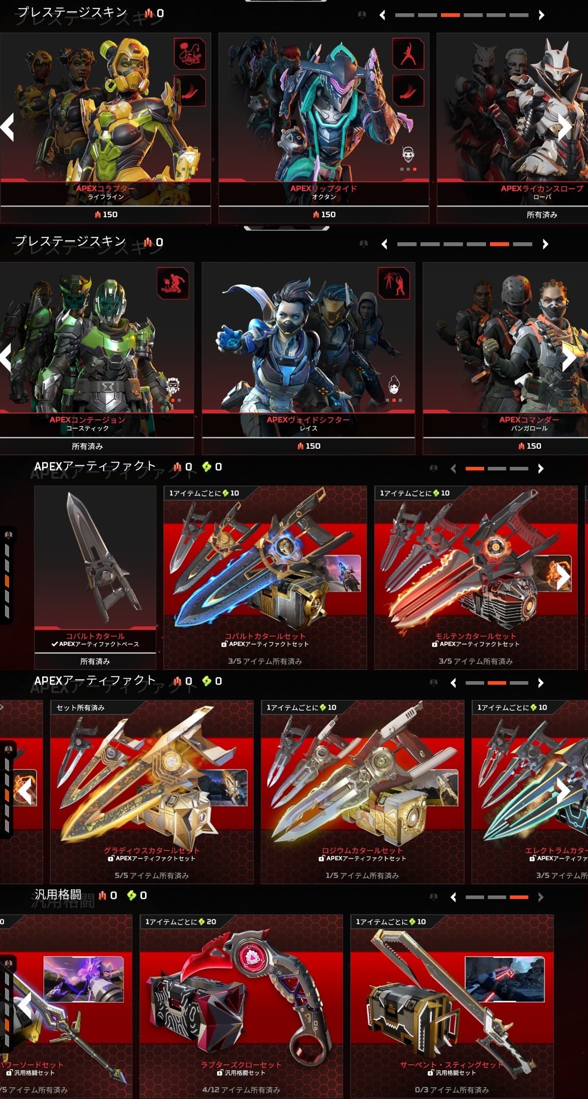 アカウント特定防止といった観点から主なスキンを抜粋して掲載しております。