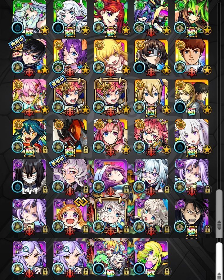 アカウント特定防止といった観点から、主なモンスターを抜粋して記載させていただいております。