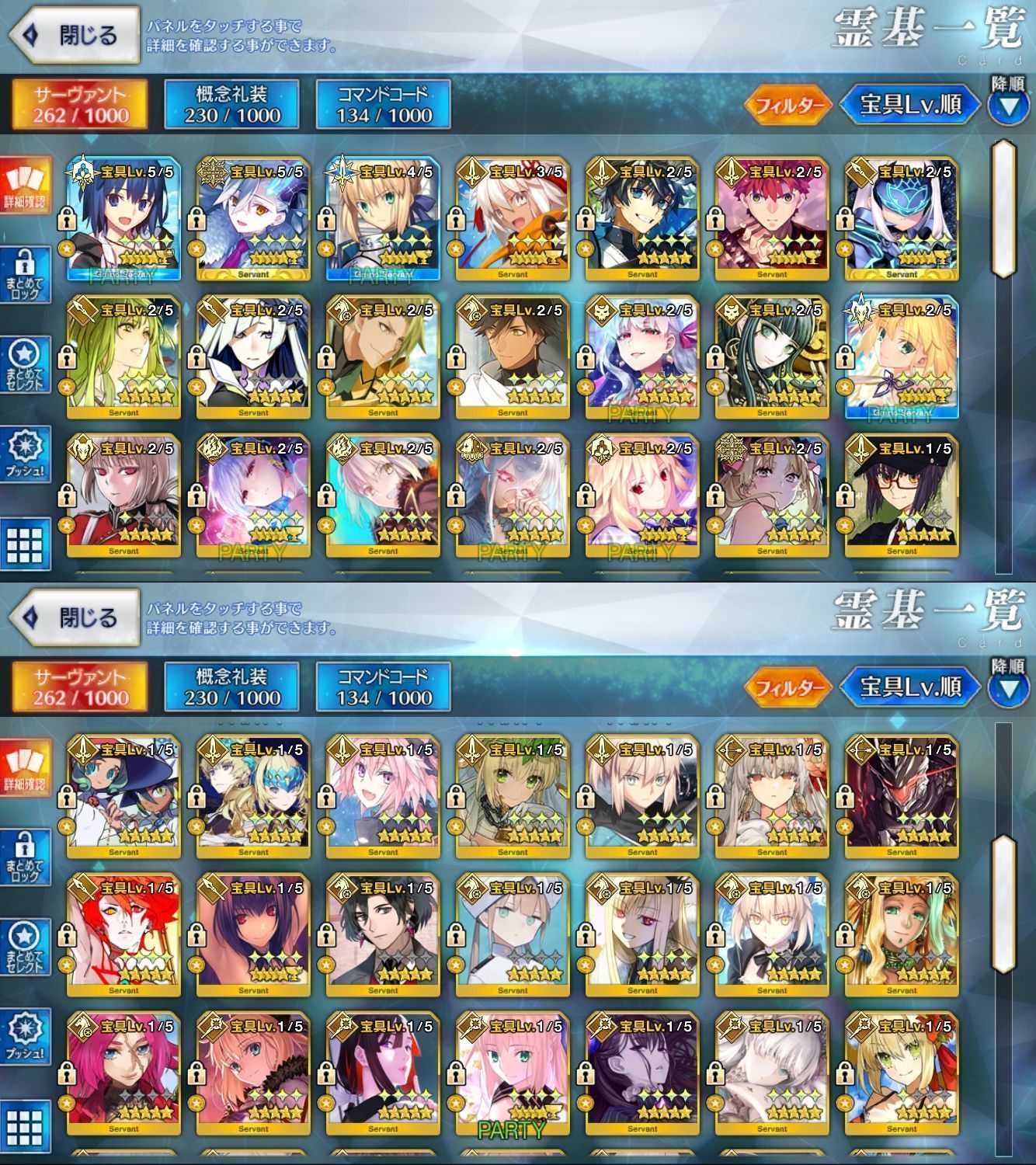 星5サーヴァントの数は累計入手数です。