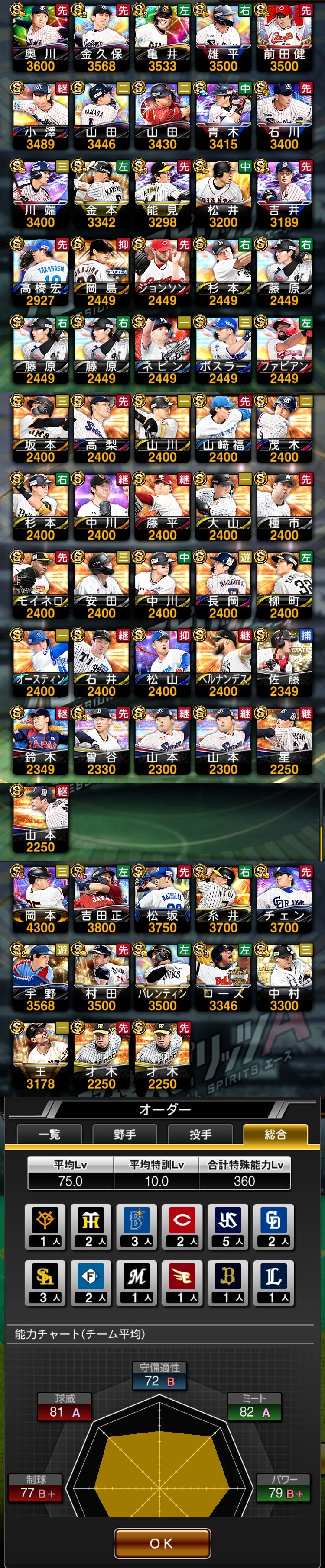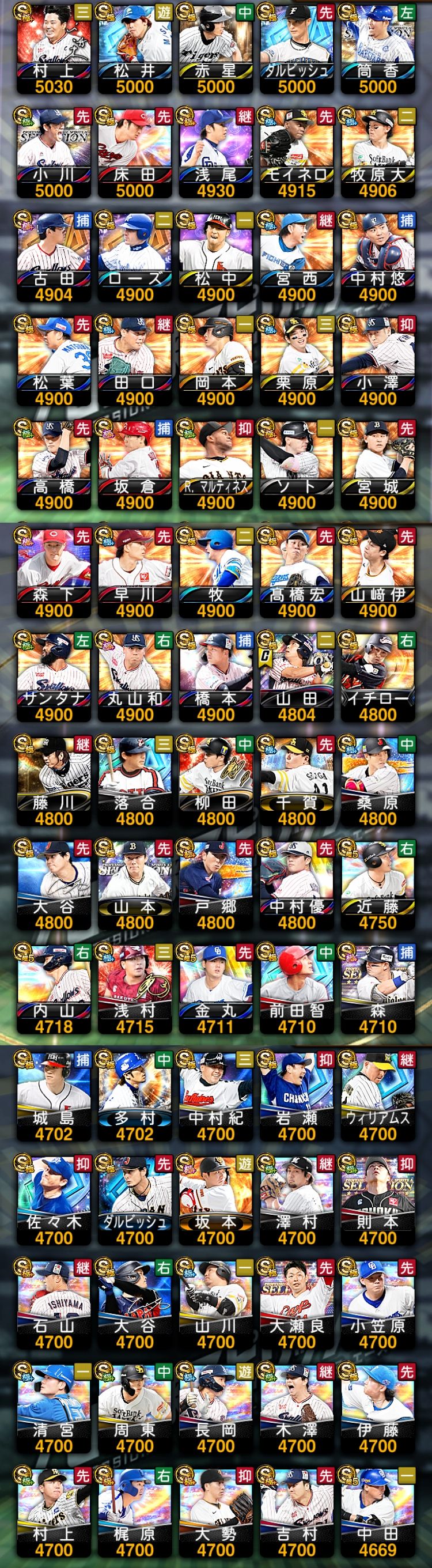 アカウント特定防止といった観点から、主な選手を抜粋して記載させていただいております。