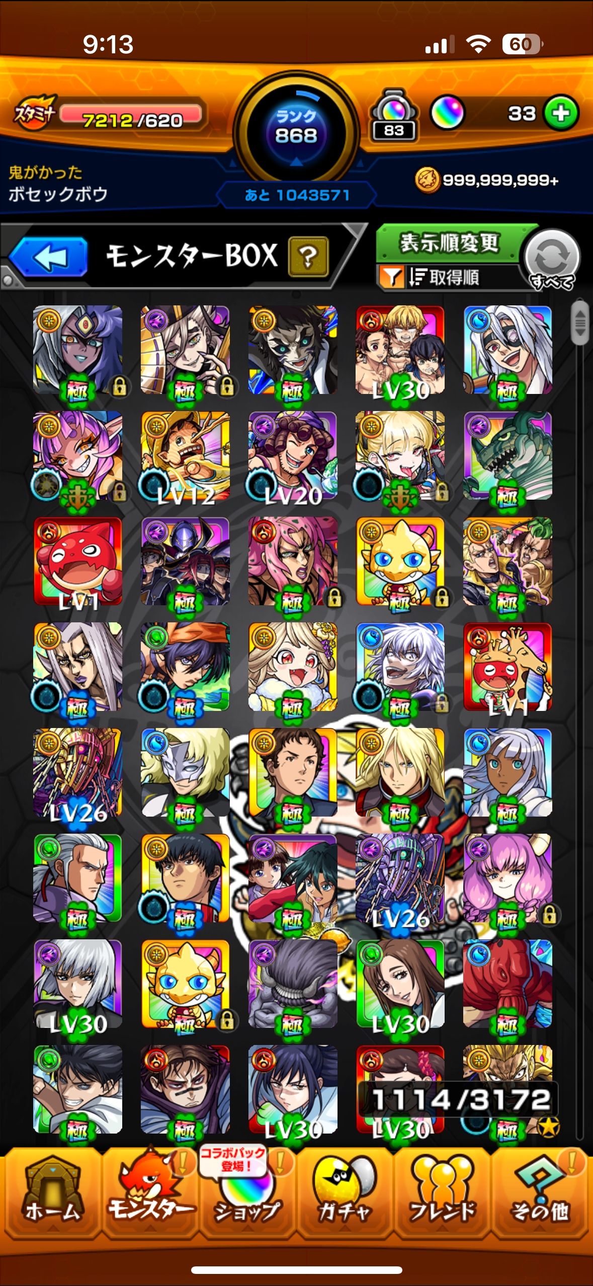 古参プレイヤーで、ゴジエヴァ、サガ(聖闘士星矢)、戸愚呂100%などが運極です。その他多数の古参キャラを持っております。