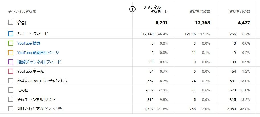 以前の視聴者層や登録者からの再生がほぼ無い訳ですから、動画投稿による登録解除も少ないです。1年放置していても1割は減りません。