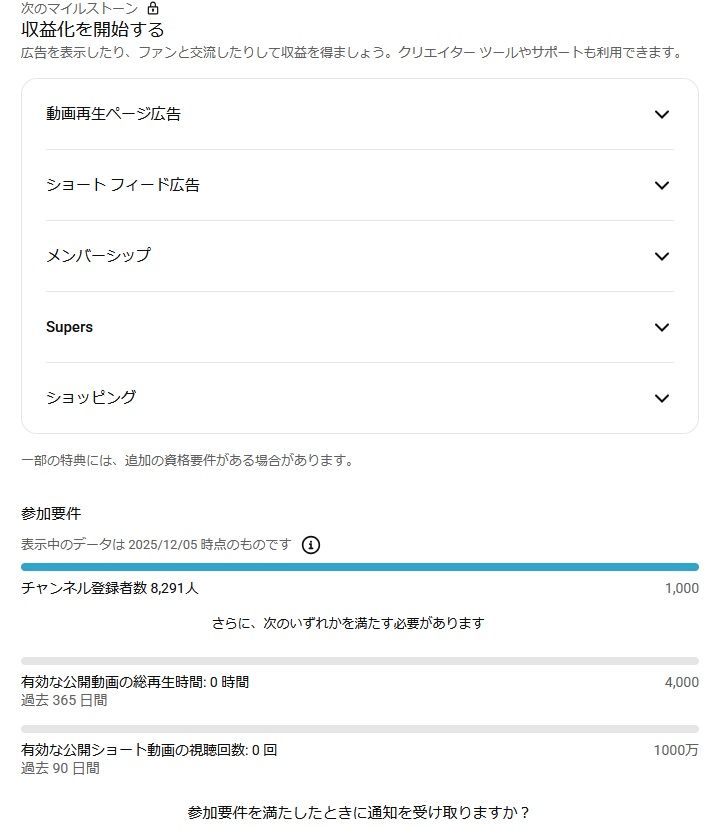 ✔収益化条件のうち、難しいと言われている「登録者1000人」をクリア済みなので、収益化までの期間を短縮出来る。