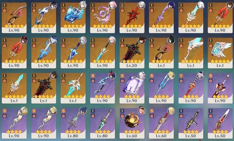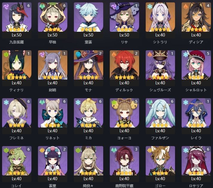 下記のようなキャラクター・武器を所持しております。(一部抜粋)