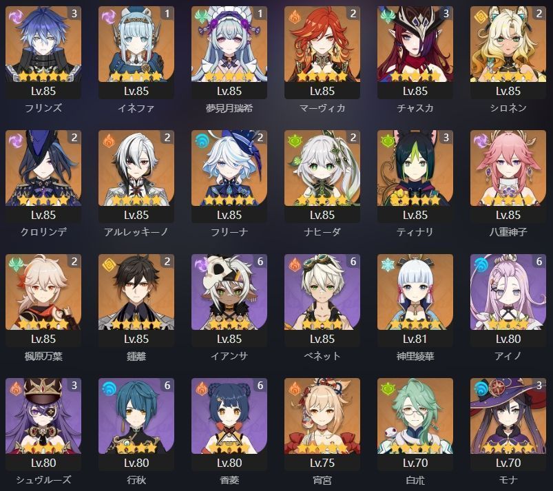 フリンズ イネファ マーヴィカ チャスカ シロネン クロリンデ アルレッキーノ フリーナ ナヒーダ 八重神子 楓原万葉 鍾離 血染めの荒れ地 砕け散る光輪 星鷲の紅き羽 岩峰を巡る歌 赦罪 赤月のシルエット 神楽の真意