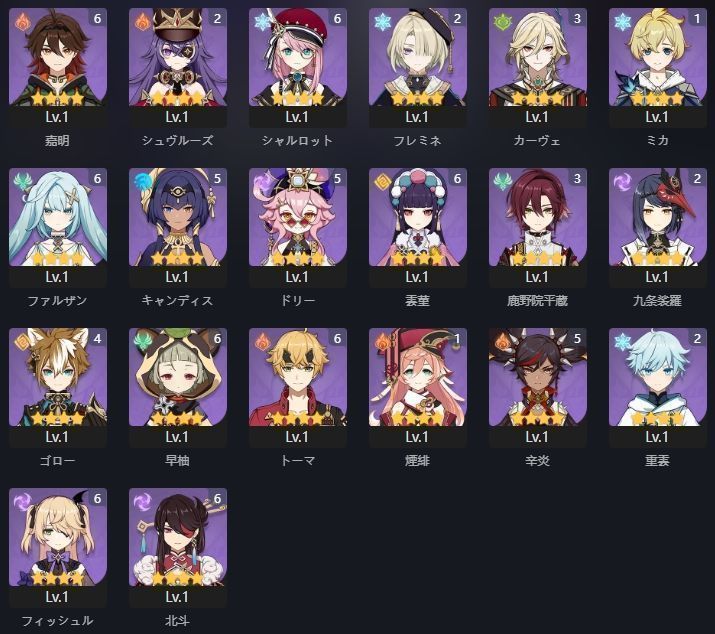 フリンズ マーヴィカ エミリエ クロリンデ 閑雲 フリーナ ヌヴィレット ナヒーダ 雷電将軍 楓原万葉 胡桃 鍾離 祭星者の眺め ルミドゥースの挽歌 赦罪 裁断 静水流転の輝き 久遠流転の大典 千夜に浮かぶ夢 若水 護摩の杖