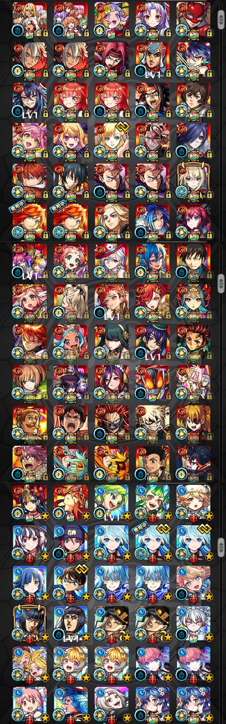 アカウント特定防止といった観点から、主なモンスターを抜粋して記載させていただいております。