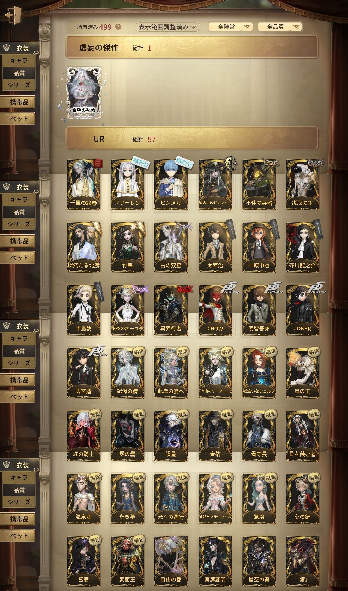 アカウント特定防止といった観点から、主な衣装を抜粋して記載させていただいております。