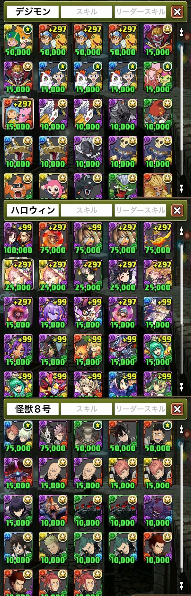 アカウント特定防止といった観点から、主なモンスターを抜粋して記載させていただいております。