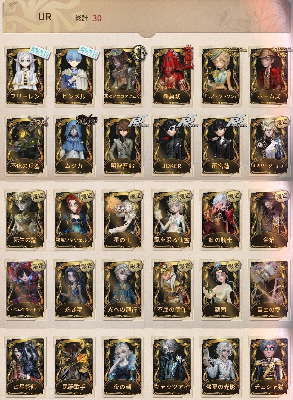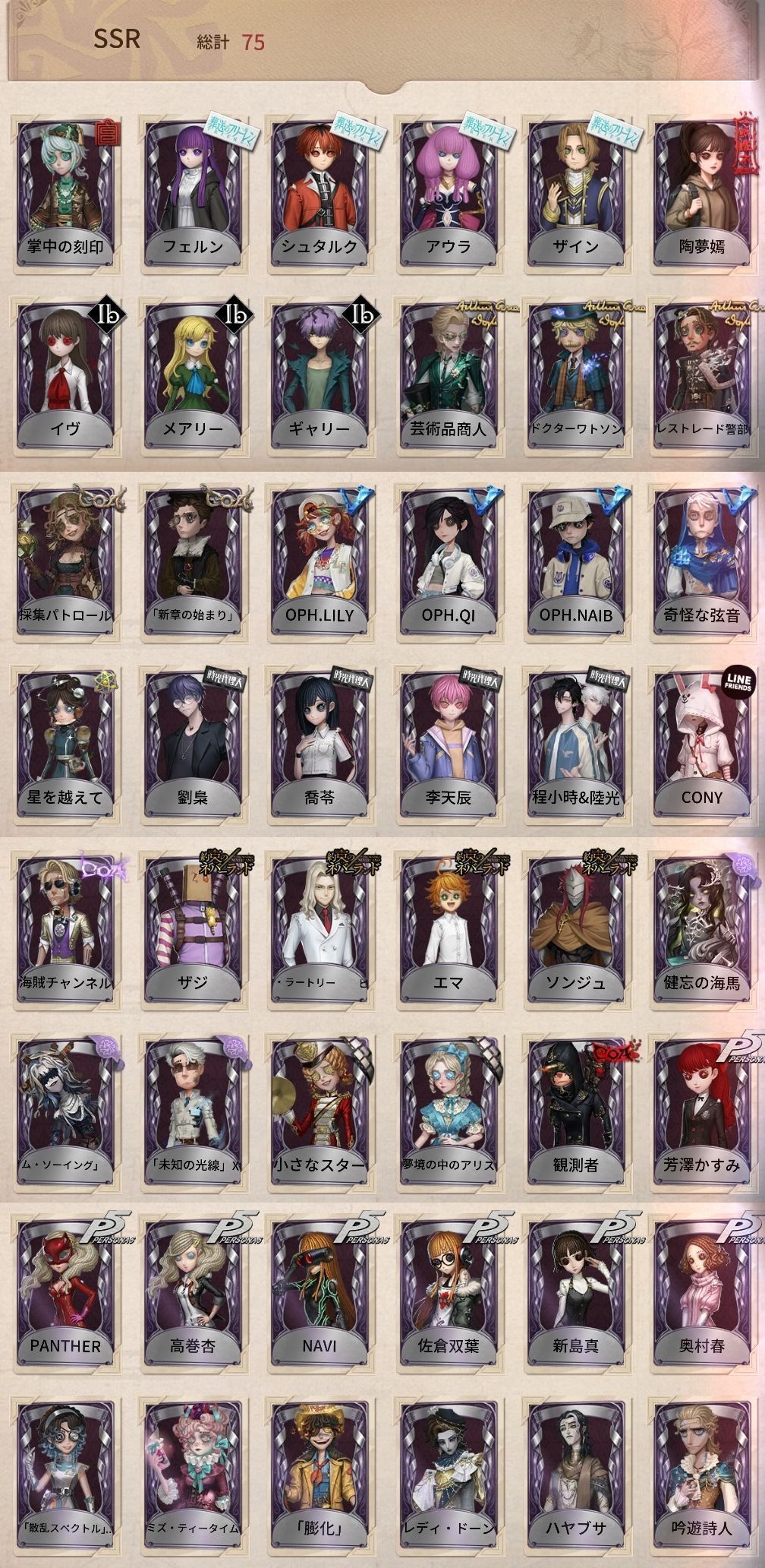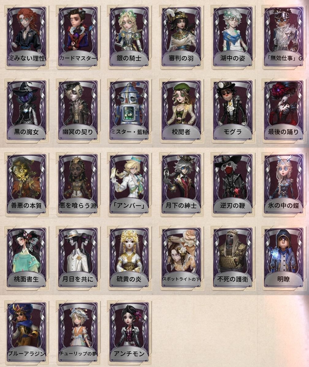 アカウント特定防止といった観点から、主な衣装を抜粋して記載させていただいております。