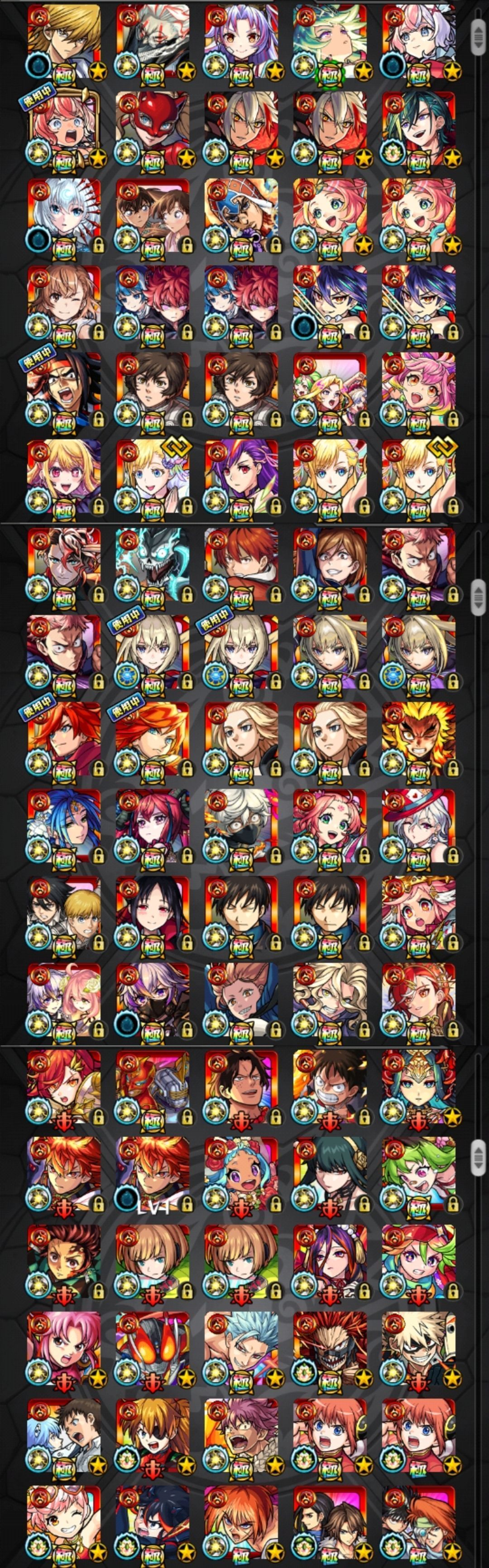アカウント特定防止といった観点から、主なモンスターを抜粋して記載させていただいております。