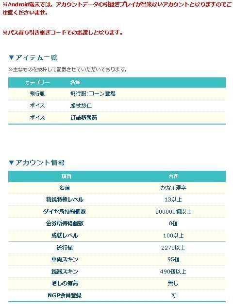引退した一般プレイヤーから、直接マツブシが買取した廃課金アカウントとなります!