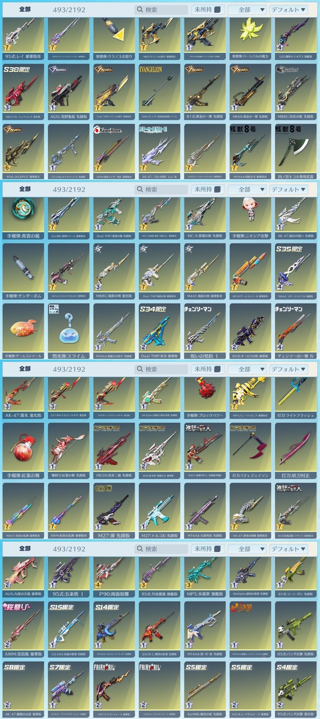 アカウント特定防止といった観点から主なスキンを抜粋して掲載しております。