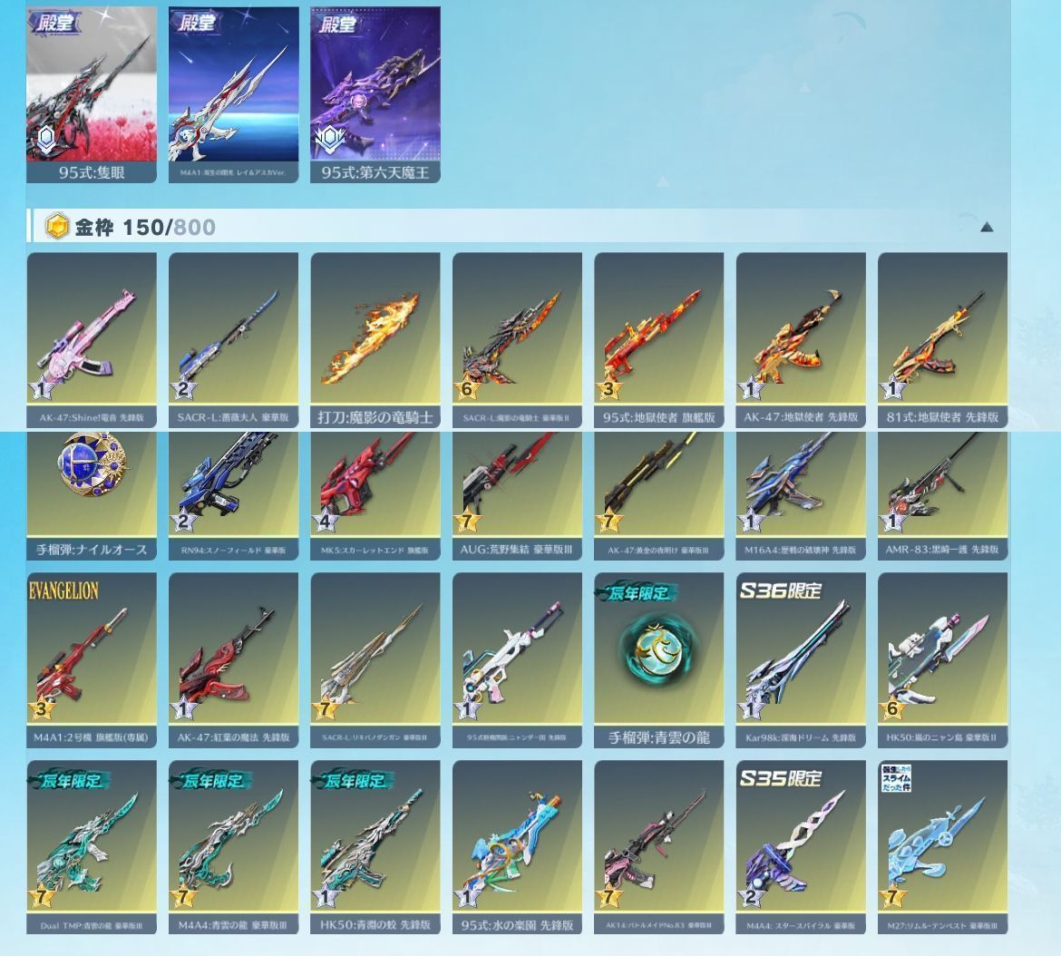 アカウント特定防止といった観点から主なスキンを抜粋して掲載しております。