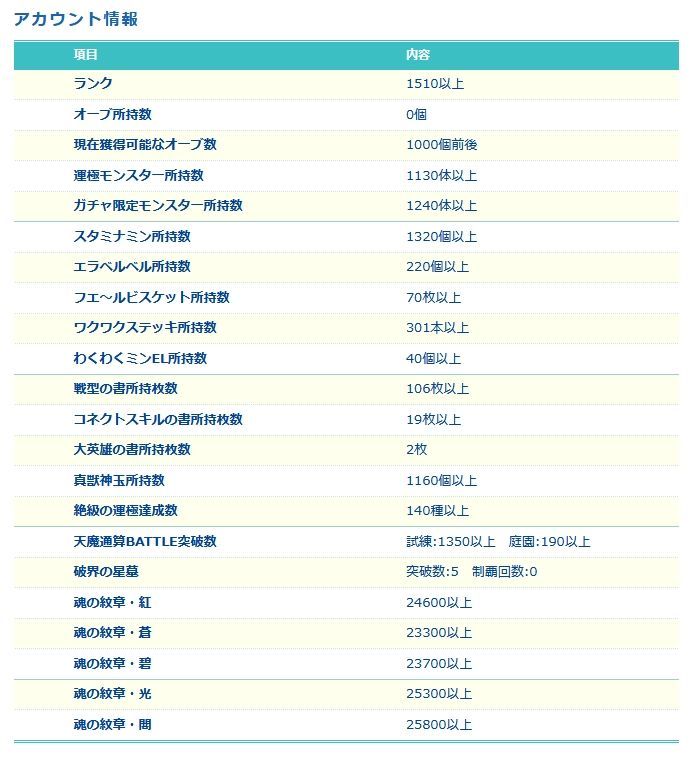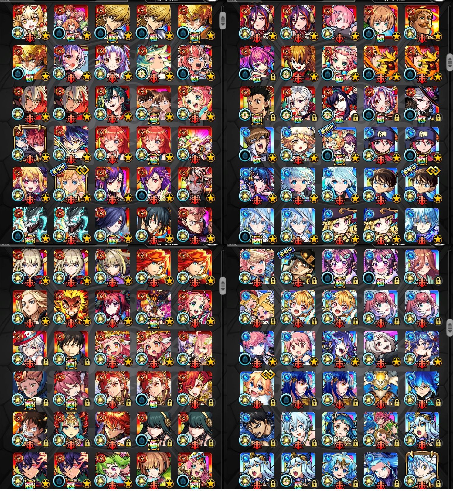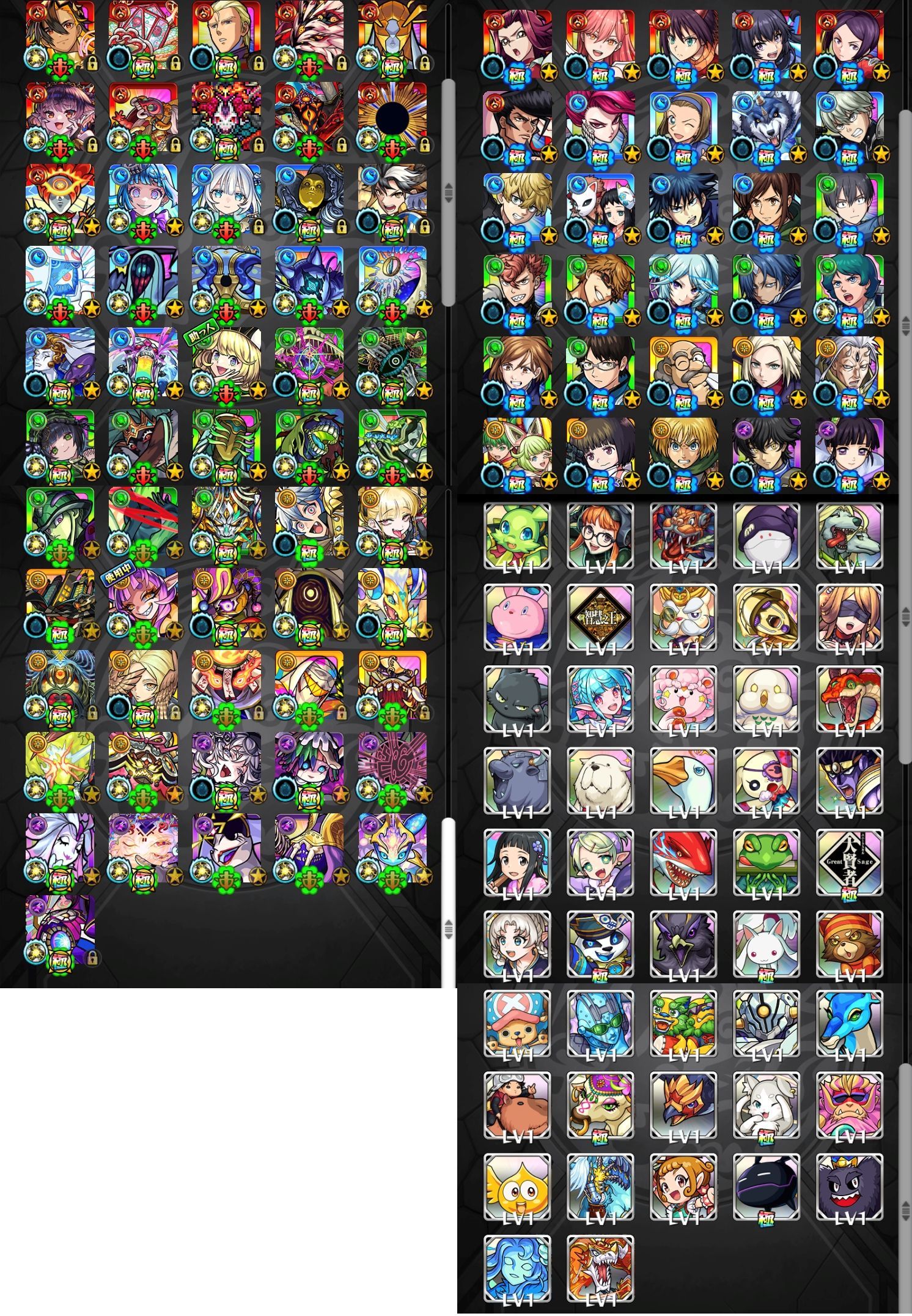 アカウント特定防止といった観点から、主なモンスターを抜粋して記載させていただいております。