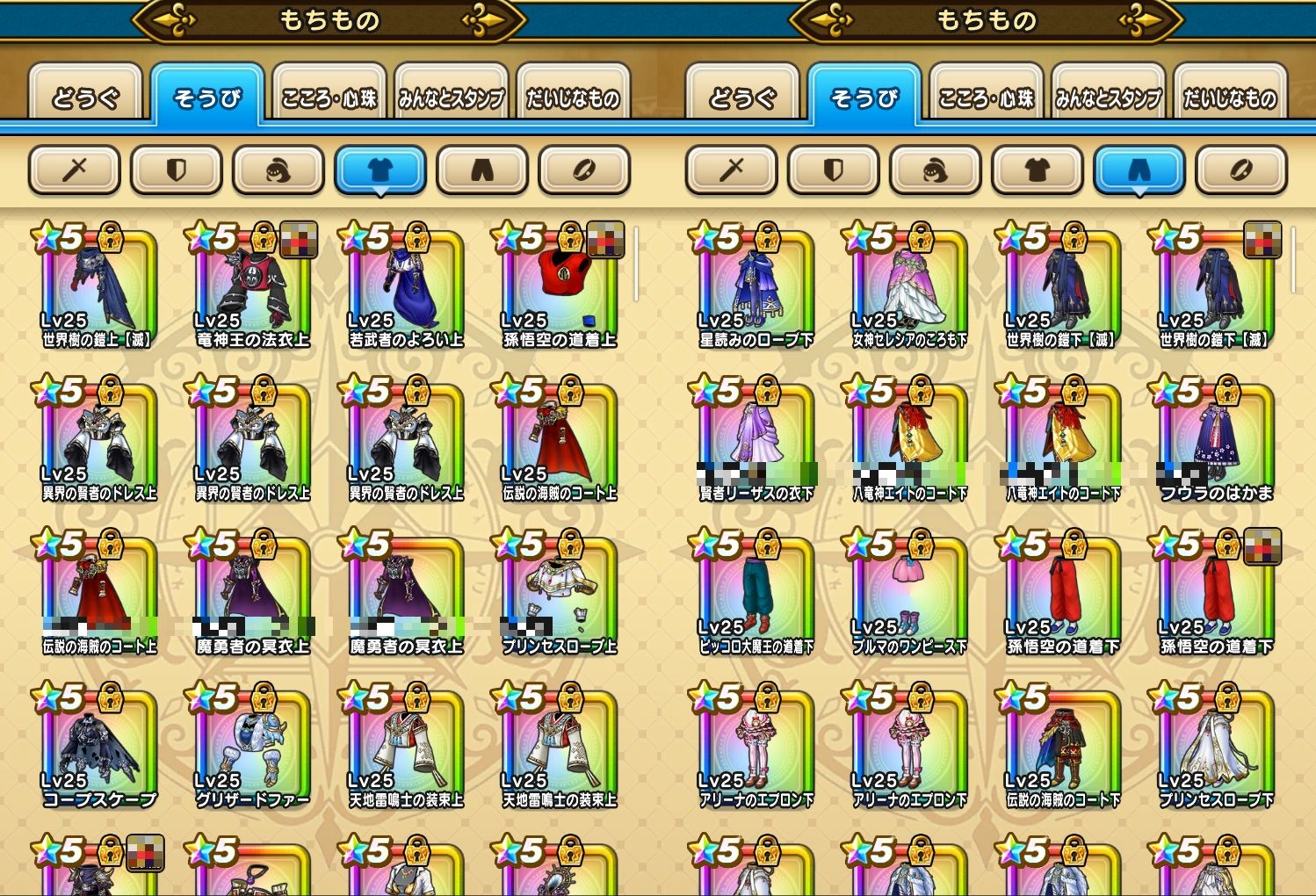 下記のようなそうびを所持しております。(一部抜粋)