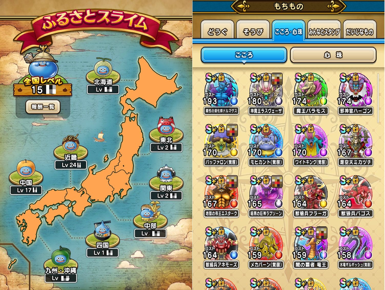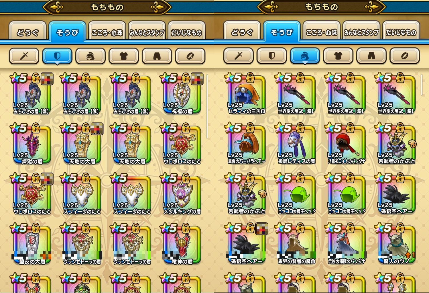 アカウント特定防止といった観点から、主な武具・こころを抜粋して記載させていただいております。