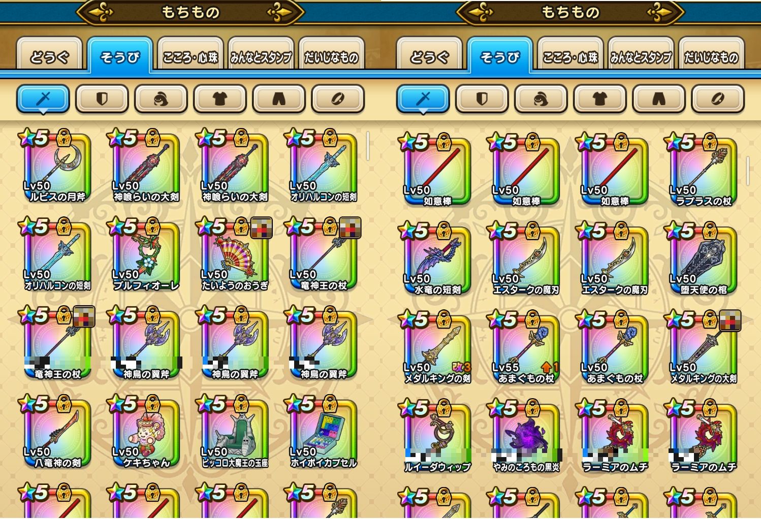 ルビスの月斧 神喰らいの大剣 ブルフィオーレ たいようのおうぎ 竜神王の杖 神鳥の翼斧 八竜神の剣 ケキちゃん ピッコロ大魔王の玉座 ホイポイカプセル 如意棒 ラプラスの杖 水竜の短剣 エスタークの魔刃