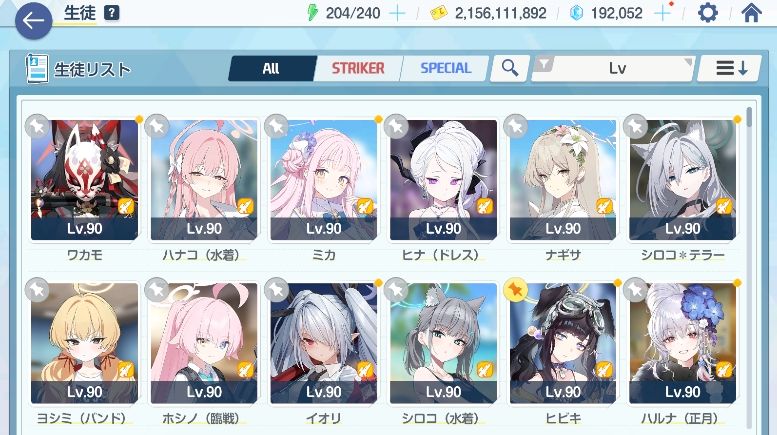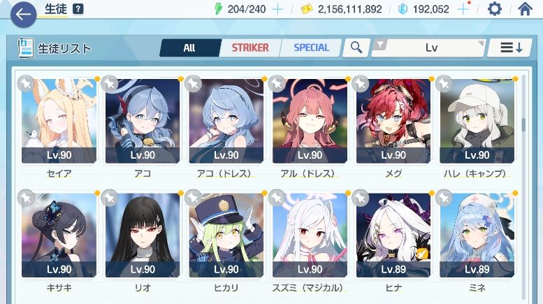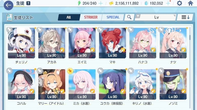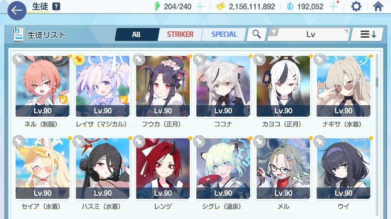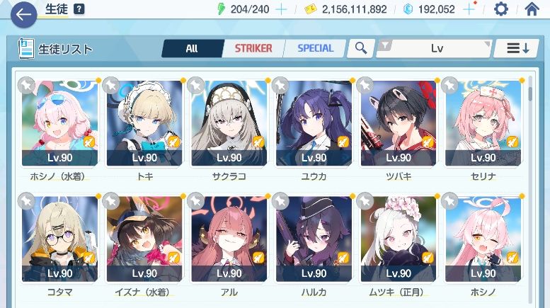 育成素材を使っていない分、キャラ育成が甘く見えますが毎日プレイしてぼちぼちイベントをこなす分には困らない程度に主要キャラの育成がしてあります。