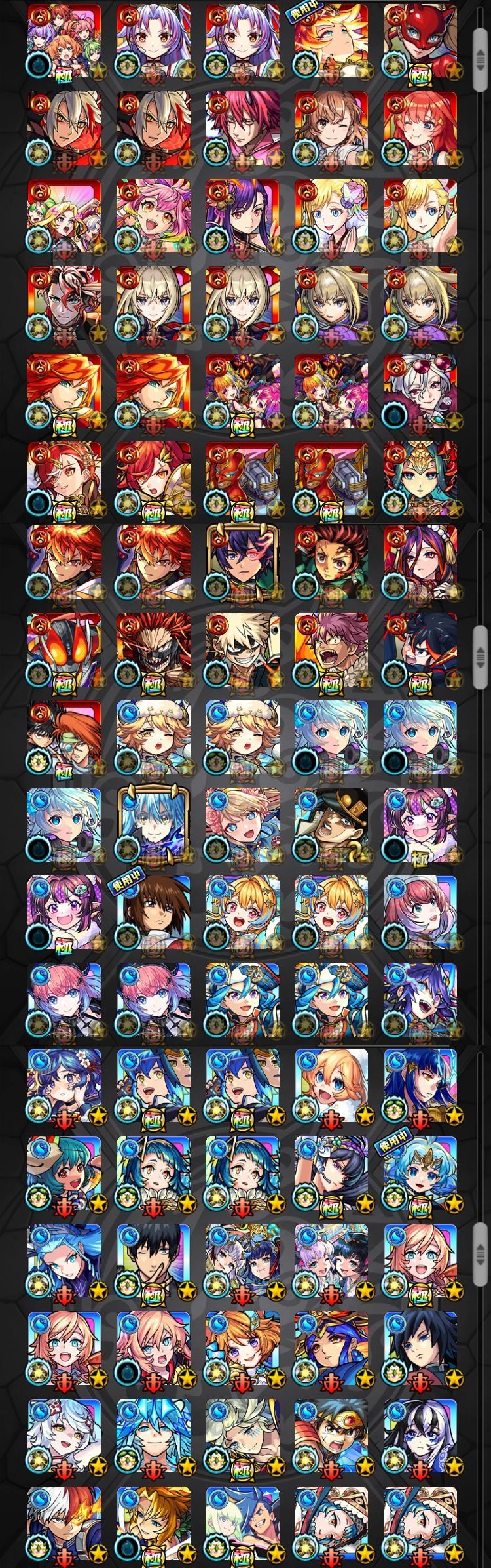 アカウント特定防止といった観点から、主なモンスターを抜粋して記載させていただいております。