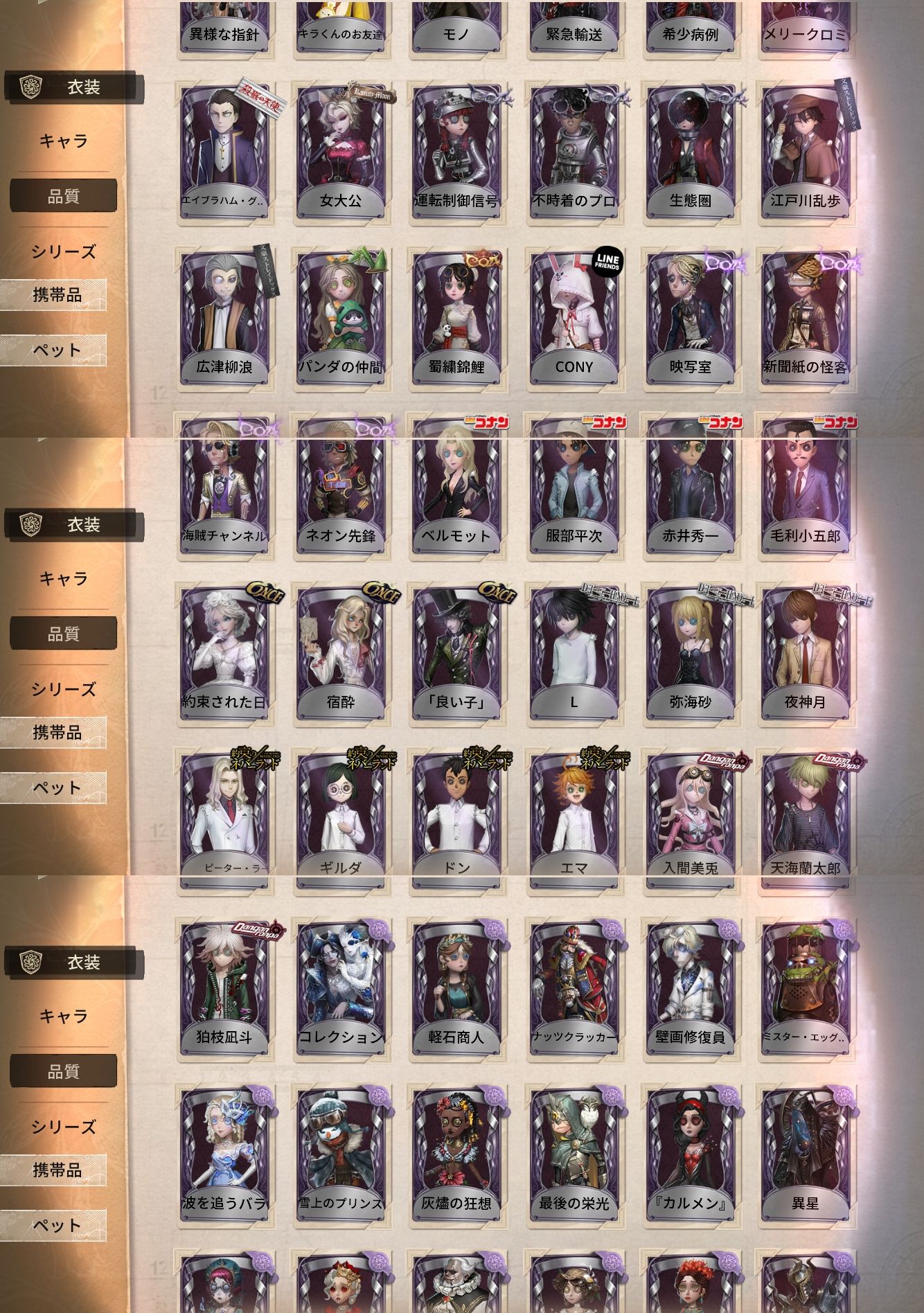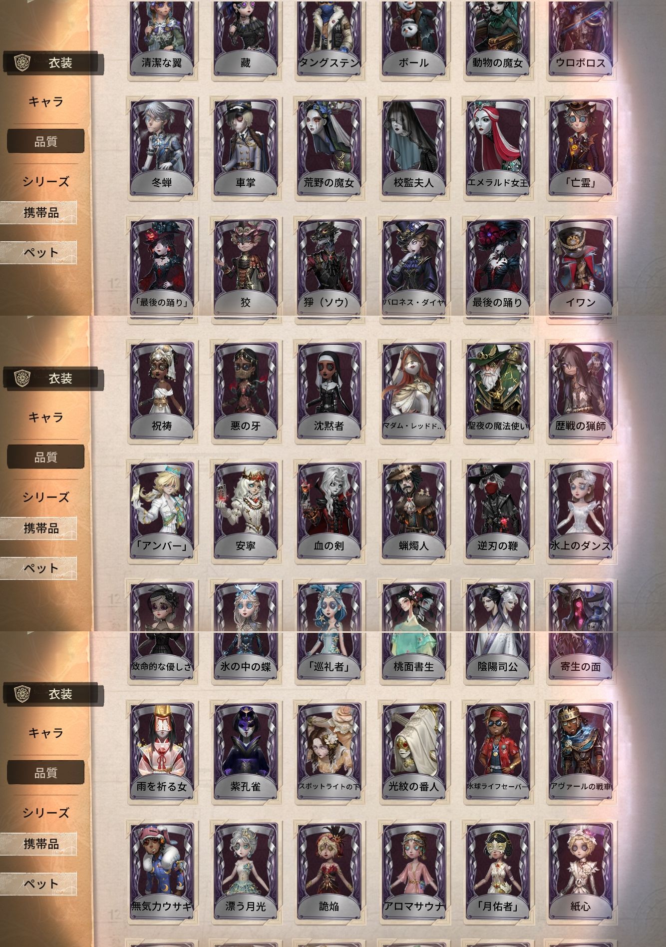 アカウント特定防止といった観点から、主な衣装を抜粋して記載させていただいております。