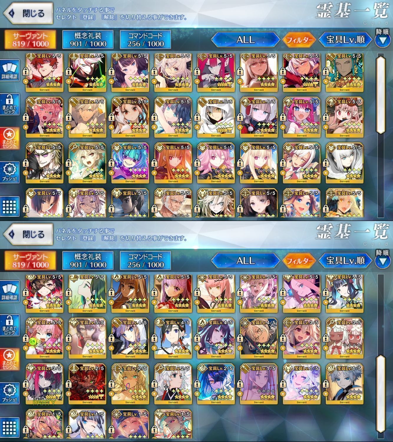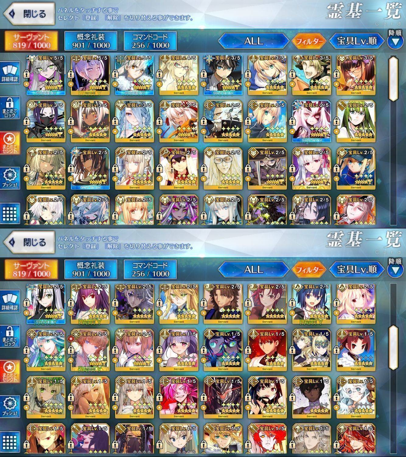 重複分は宝具強化に使用しているため、累計入手数=★5サーヴァントの宝具レベル合計値となります。