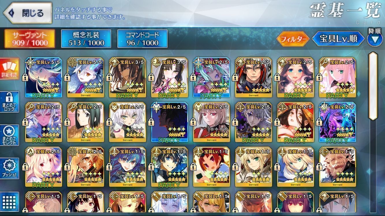星5サーヴァントの数は累計入手数です。