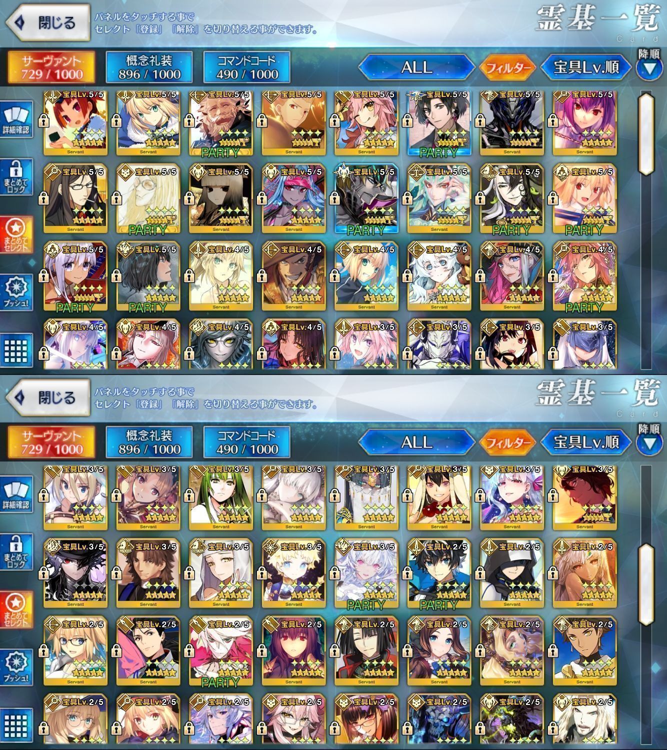 重複分は宝具強化に使用しているため、累計入手数=★5サーヴァントの宝具レベル合計値となります。