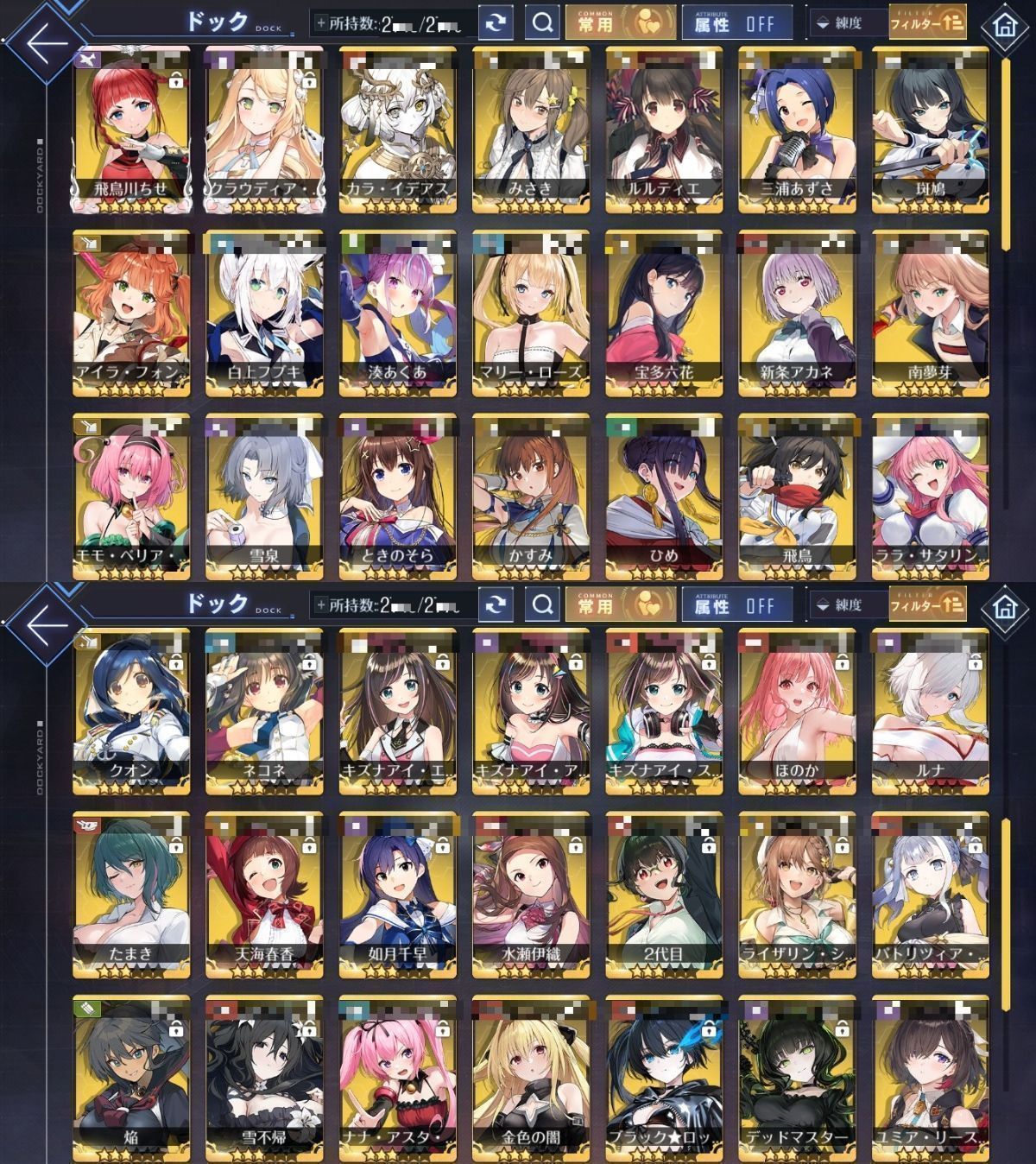 アカウント特定防止といった観点から、主なキャラクター・装備・衣装を抜粋して記載させていただいております。
