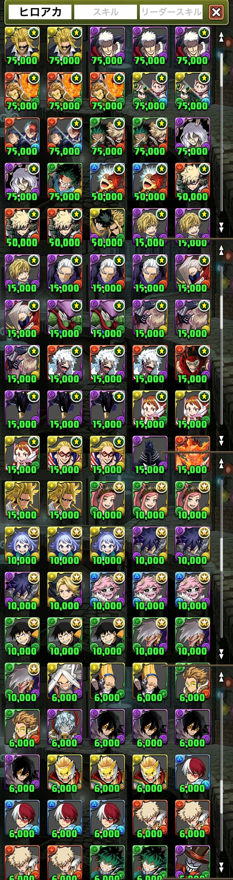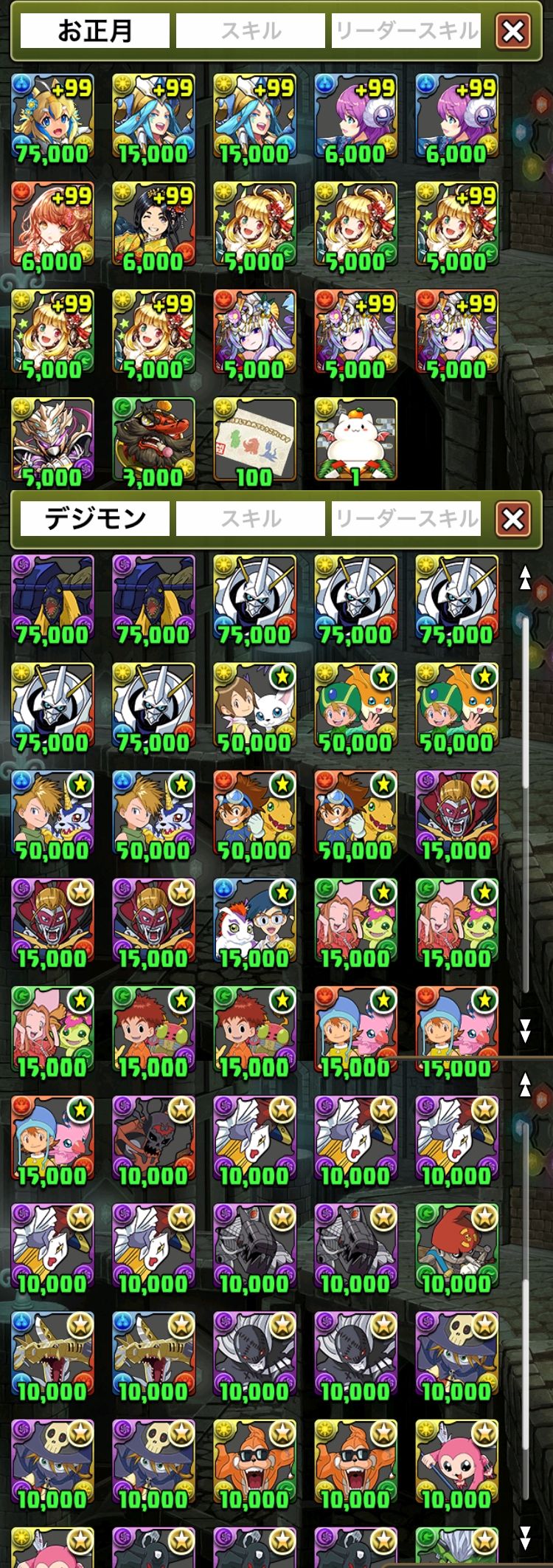 アカウント特定防止といった観点から、主なモンスターを抜粋して記載させていただいております。