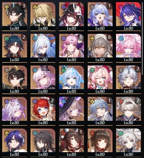 下記のようなキャラクター・光円錐を所持しております。(一部抜粋)