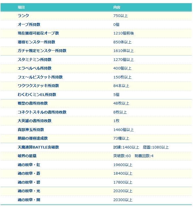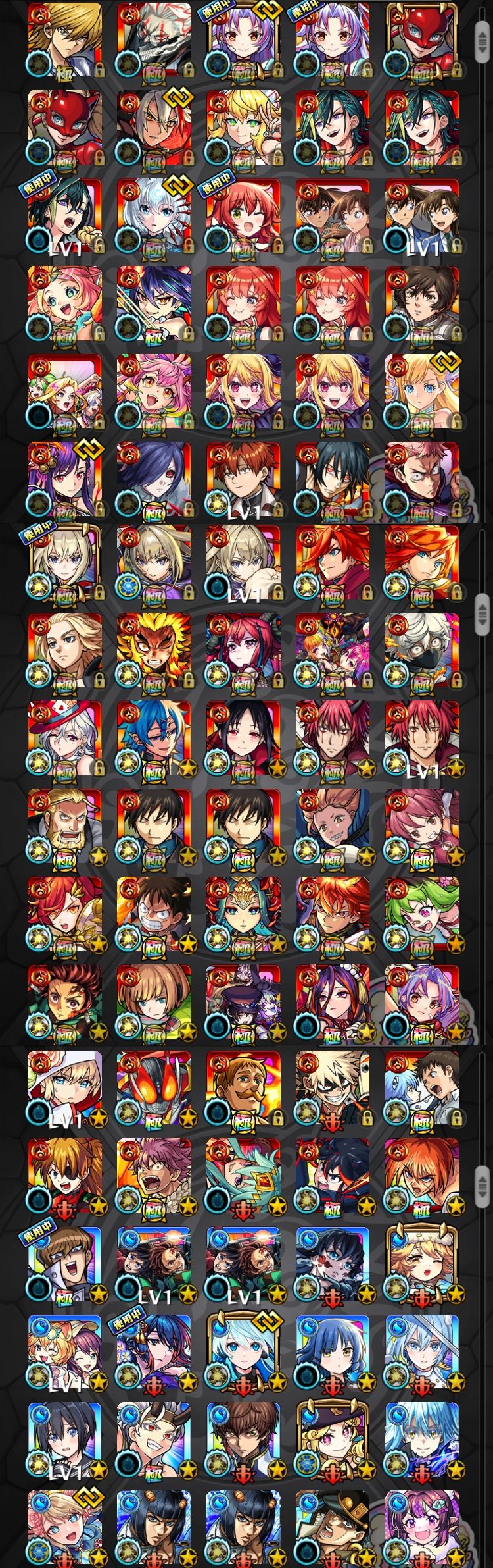 アカウント特定防止といった観点から、主なモンスターを抜粋して記載させていただいております。