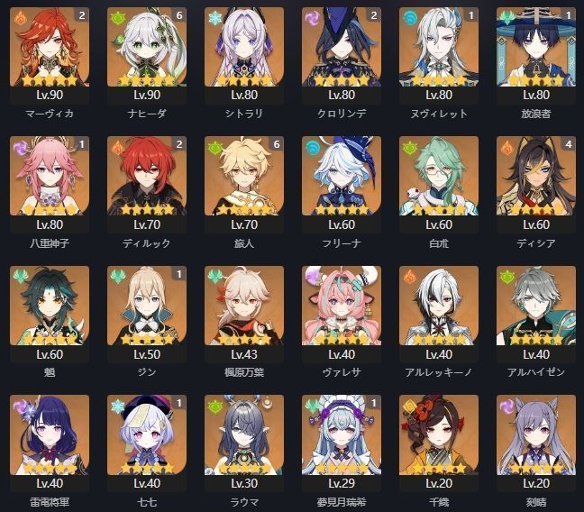 ラウマ ヴァレサ マーヴィカ シトラリ クロリンデ アルレッキーノ フリーナ ヌヴィレット ナヒーダ 八重神子 雷電将軍 楓原万葉 千烈の日輪 赦罪 千夜に浮かぶ夢