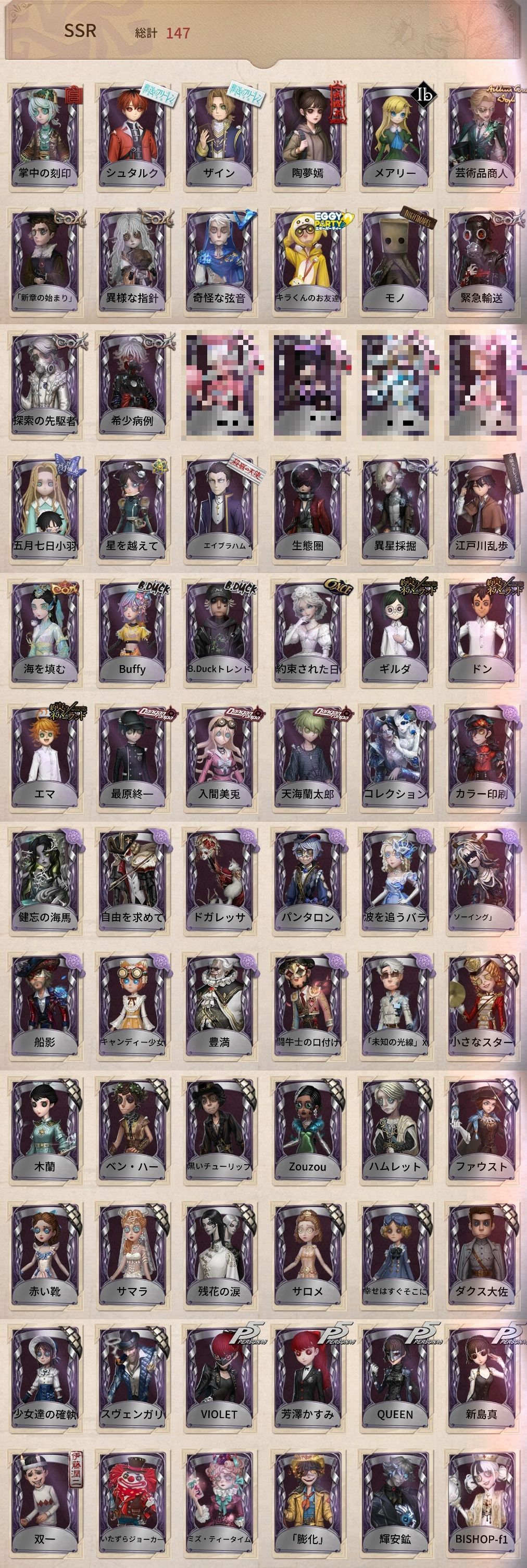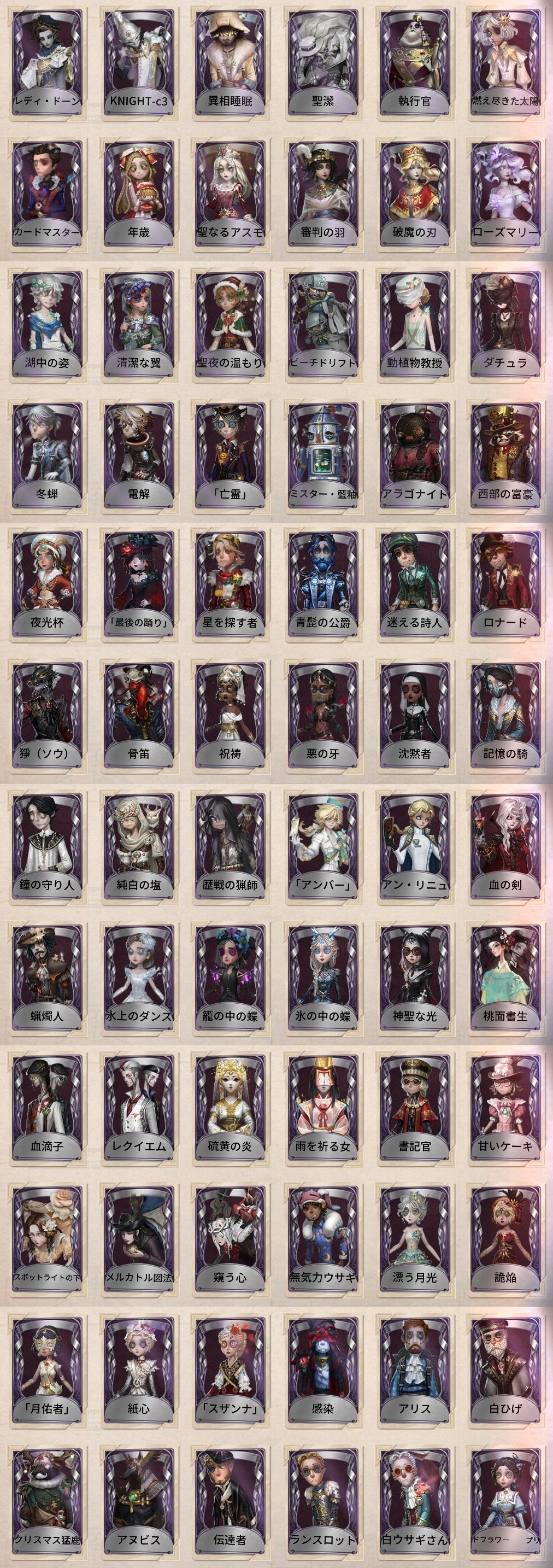 アカウント特定防止といった観点から、主な衣装を抜粋して記載させていただいております。